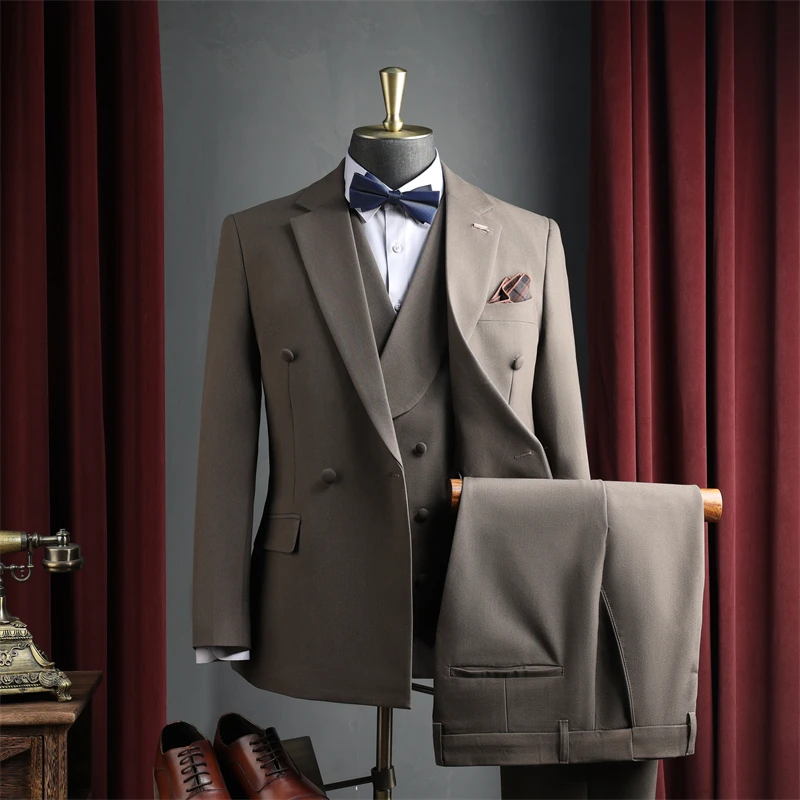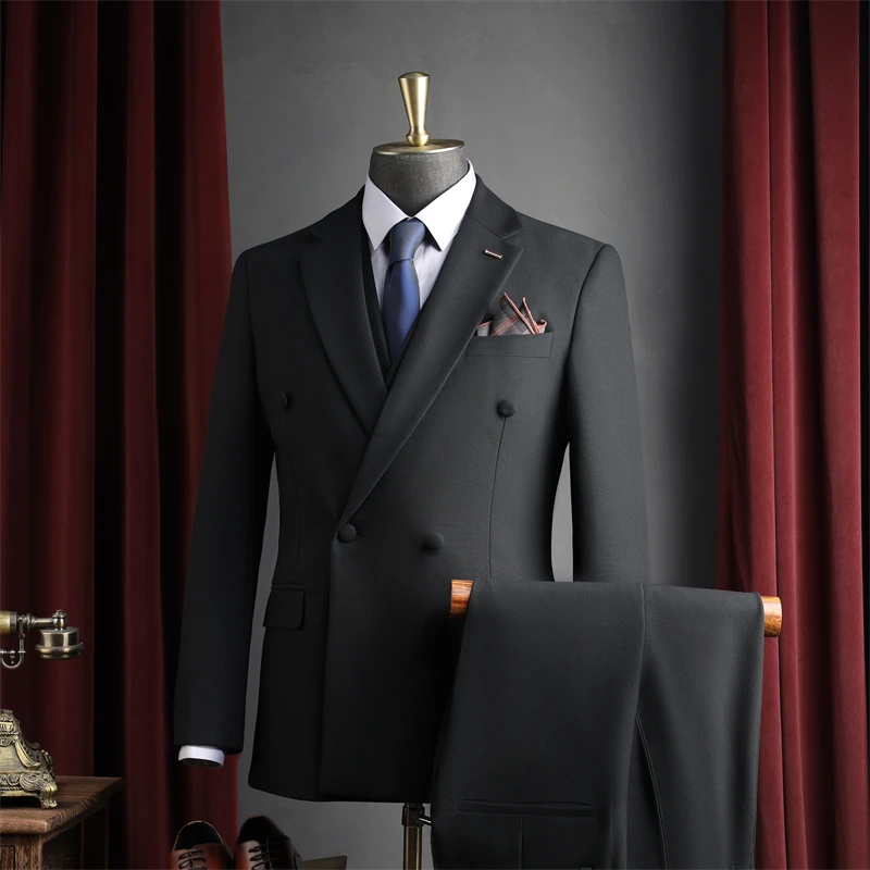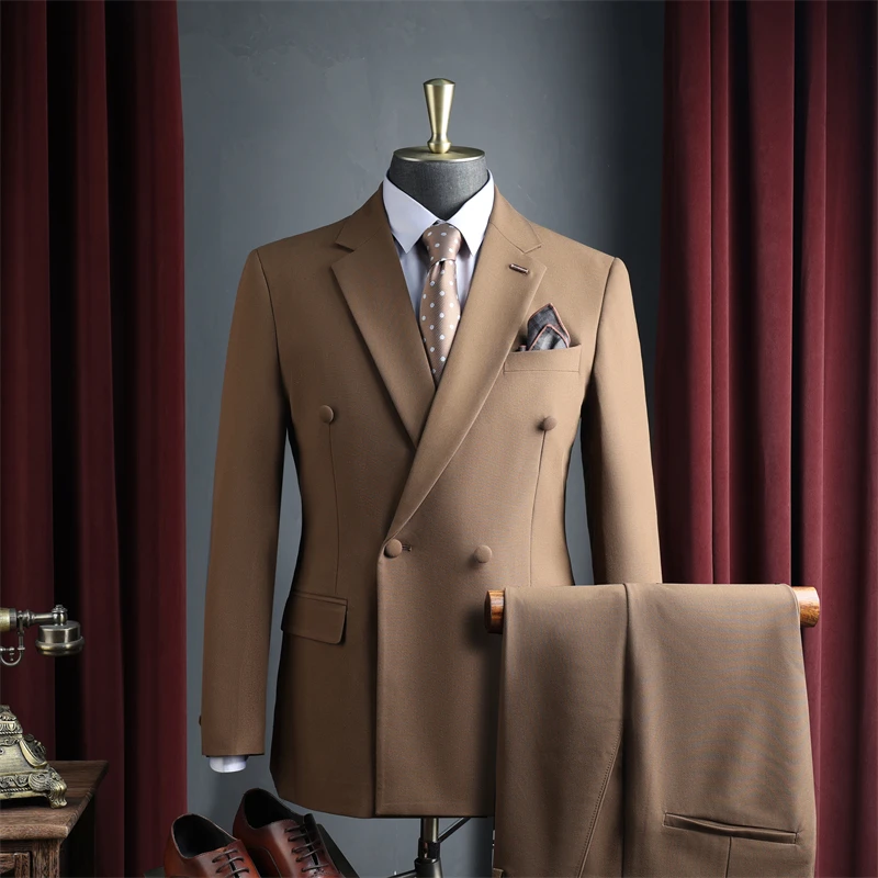Men's Formal 2-PC Slim Fit Business Suit Set Double Breasted Jacket Breathable Worsted Fabric Luxury Evening Wear