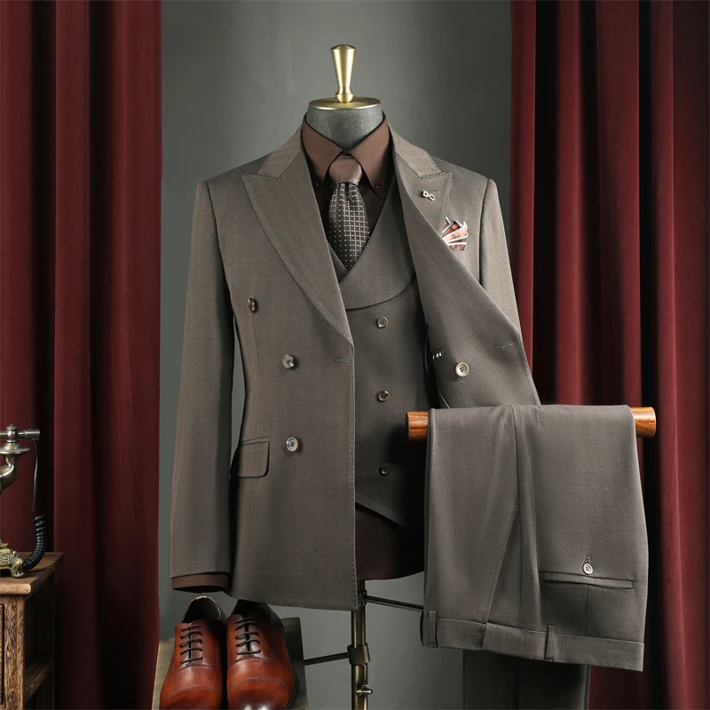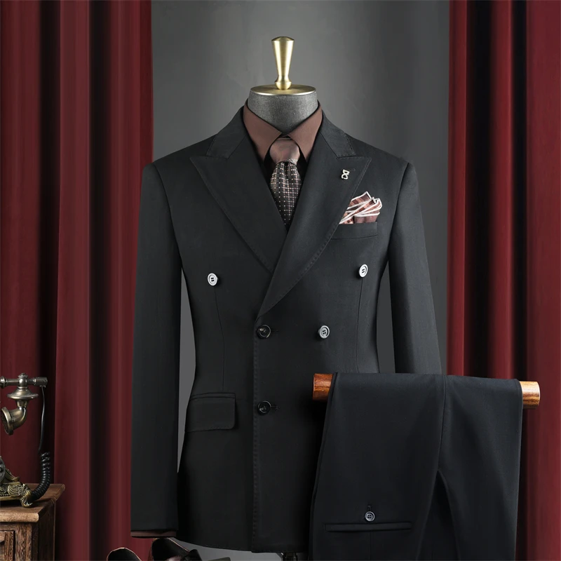 Men's Slim Fit Double-Breasted Smart Casual Autumn Business Suit Blazer Polyester/Cotton Fabric High Quality Evening Wear Luxury