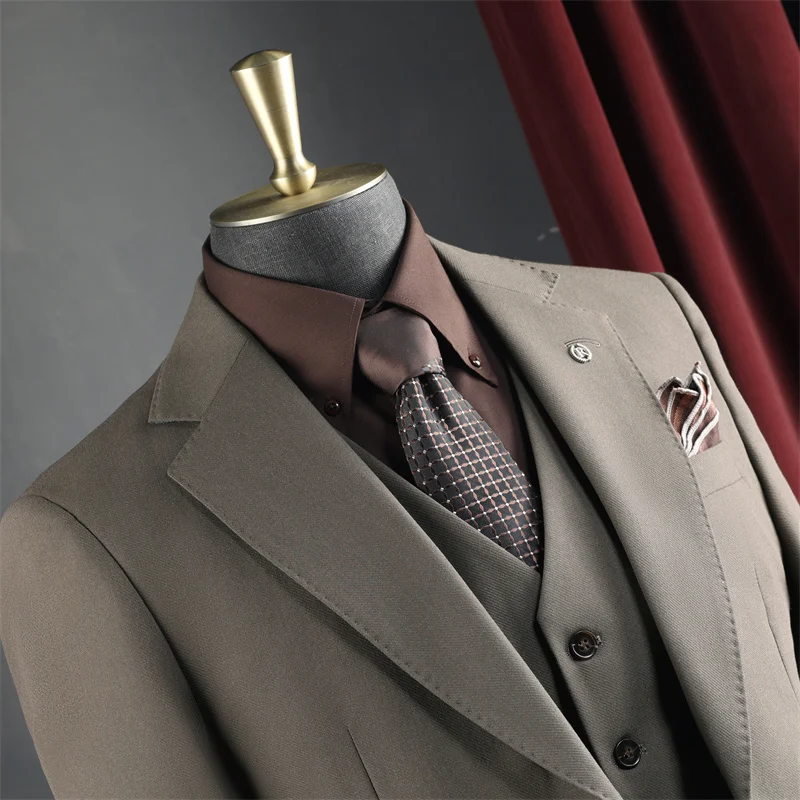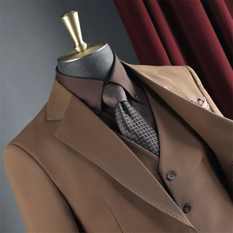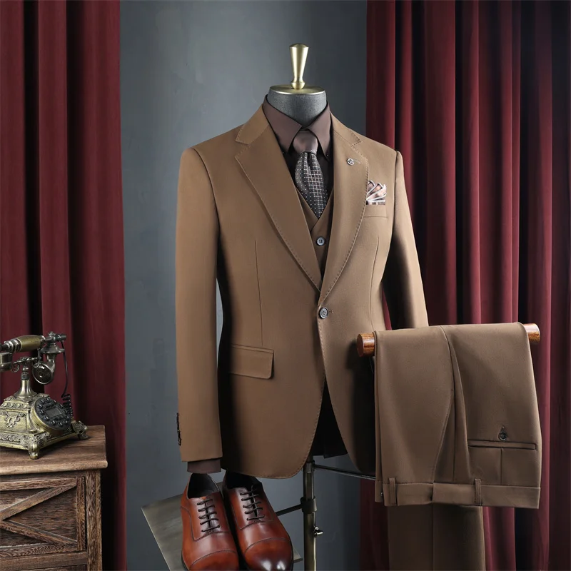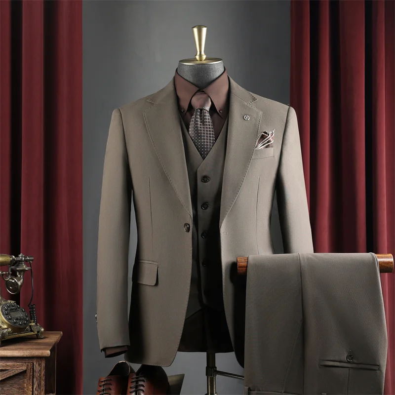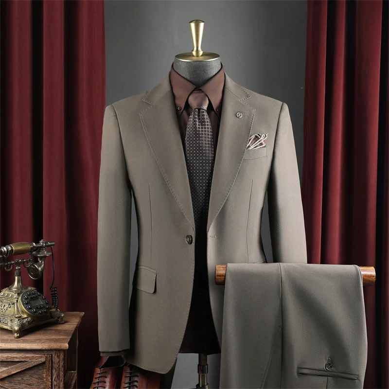 Men's Wedding Banquet Formal Business Suits Solid Color Breathable Anti-Wrinkle for Leisure Office Occasions
