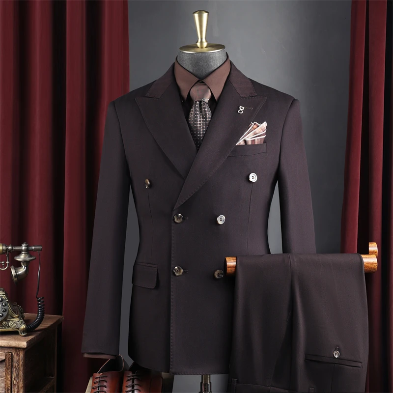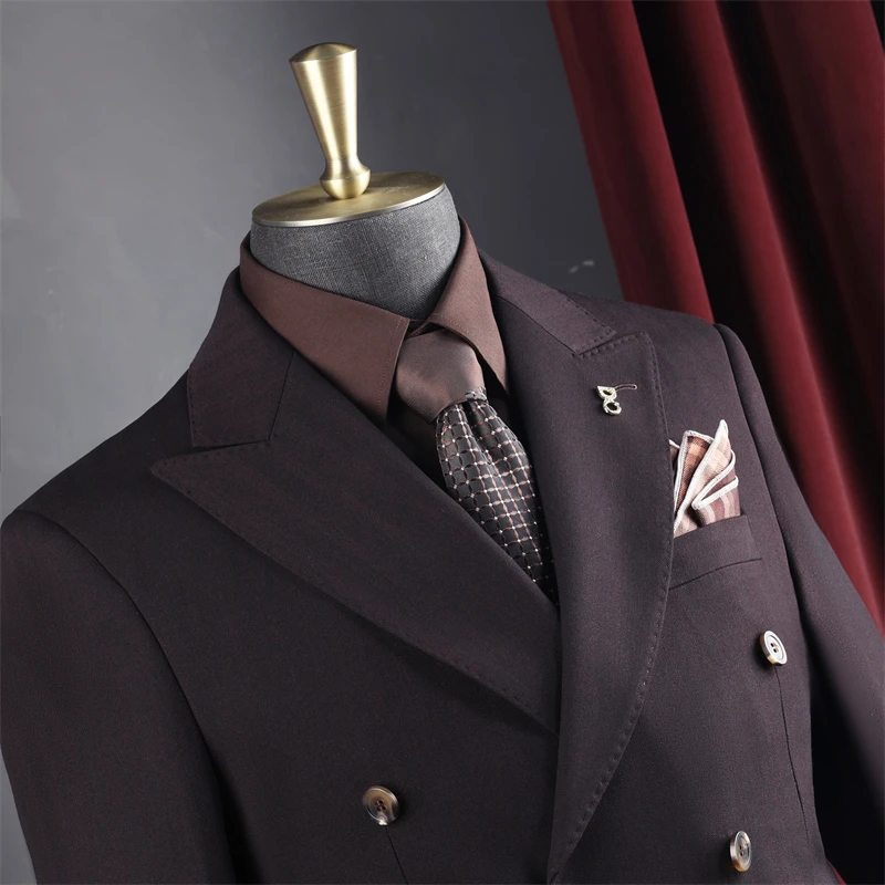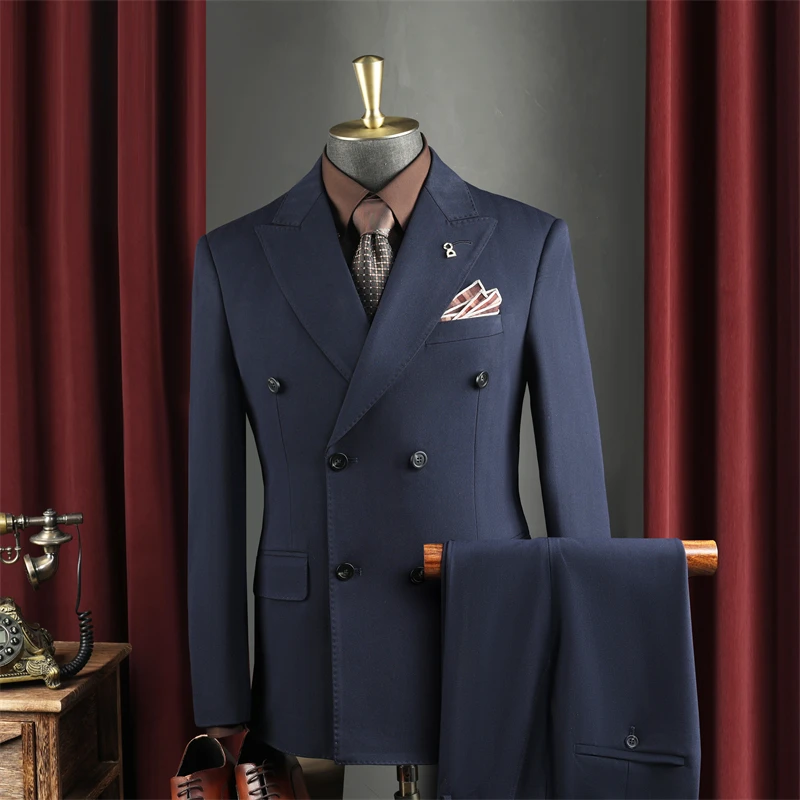 Men's Slim Fit Business Casual Suit Breathable TR Fabric V-Neck Blazer with Zipper Fly Pants Double Breasted for Weddings