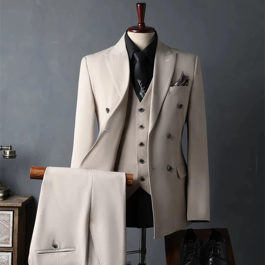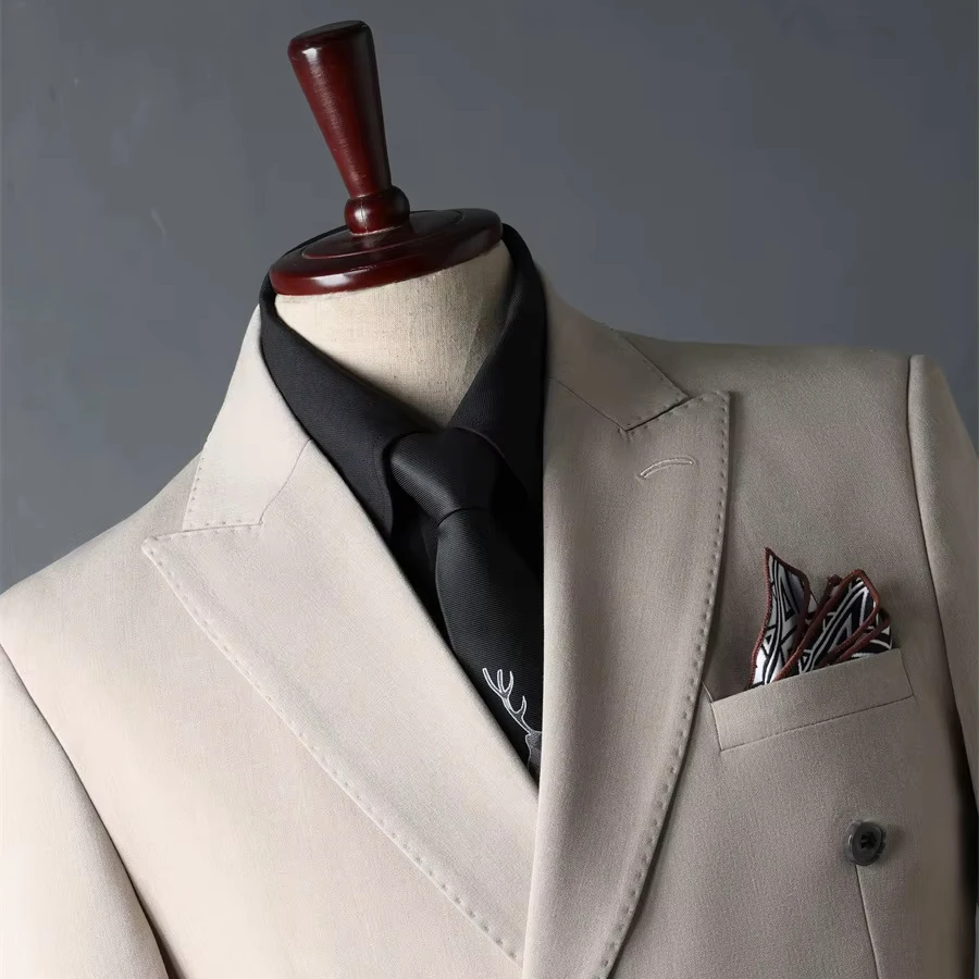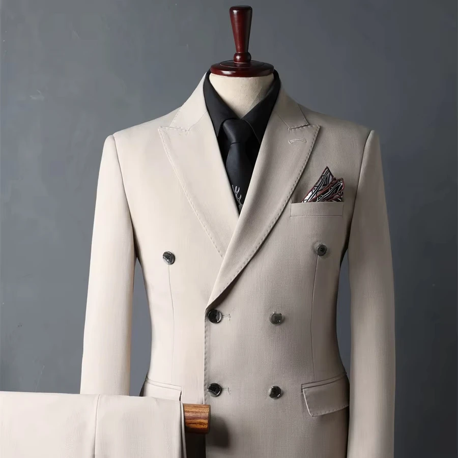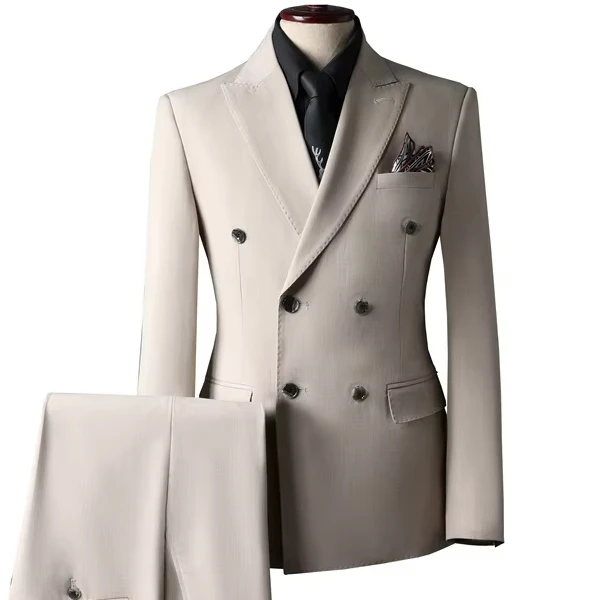 Premium Double Breasted Viscose/Polyester Men's Slim Fit Business Formal Suits for Weddings Events Breathable & Anti-Wrinkle