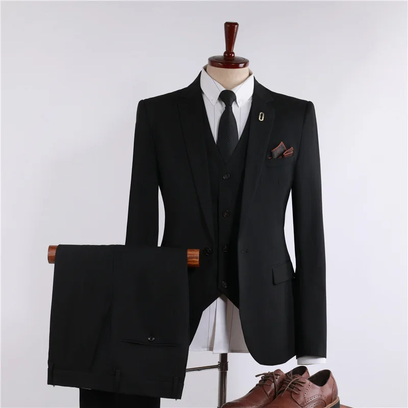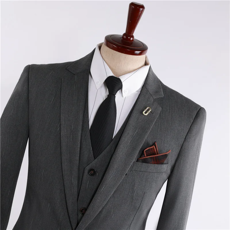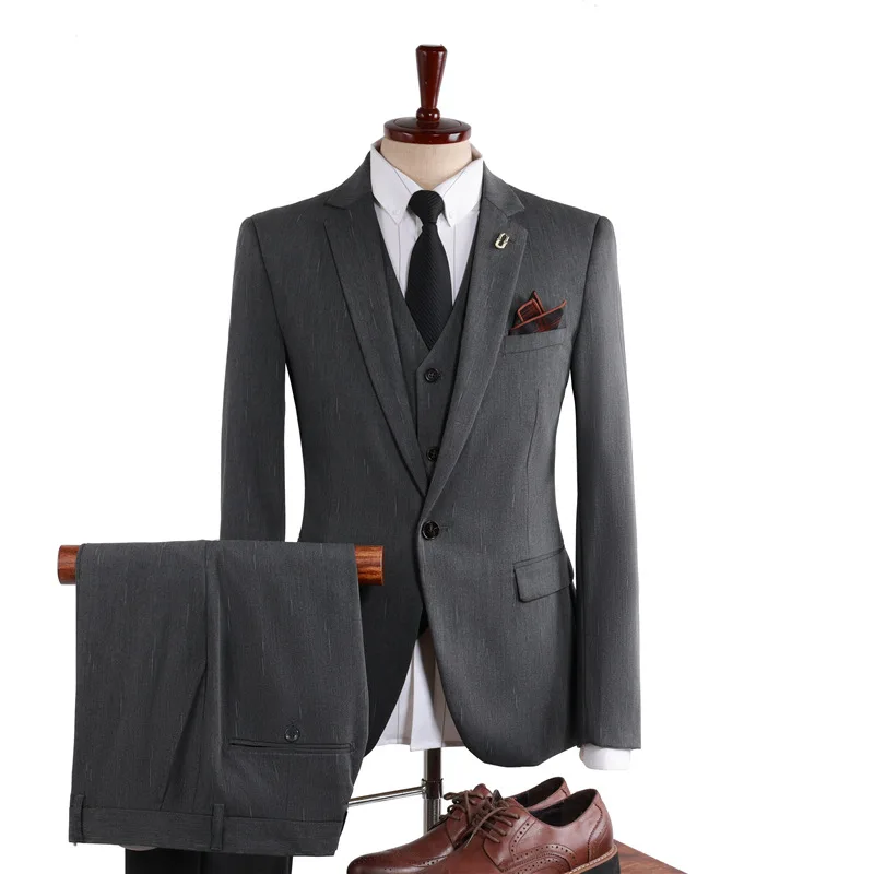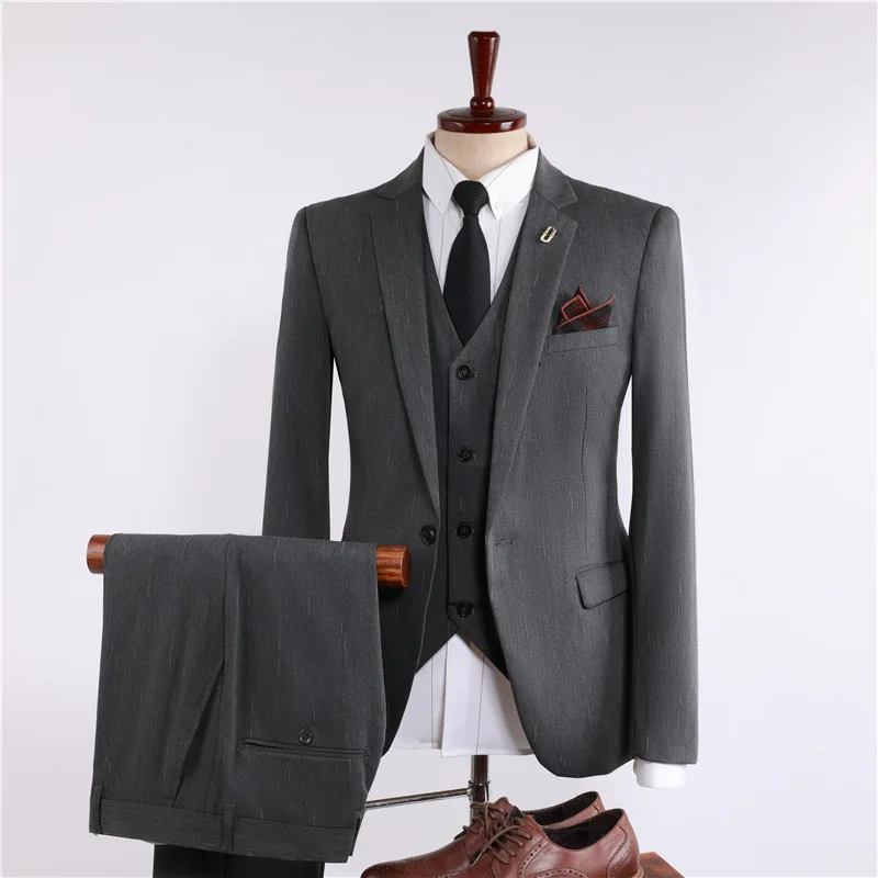 100% Polyester Business Suit Men Single Breasted Flat Front Corporate Executive 3-Piece Anti-Wrinkle Breathable Student Budget
