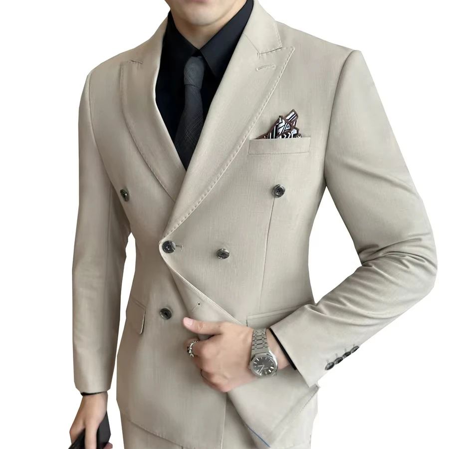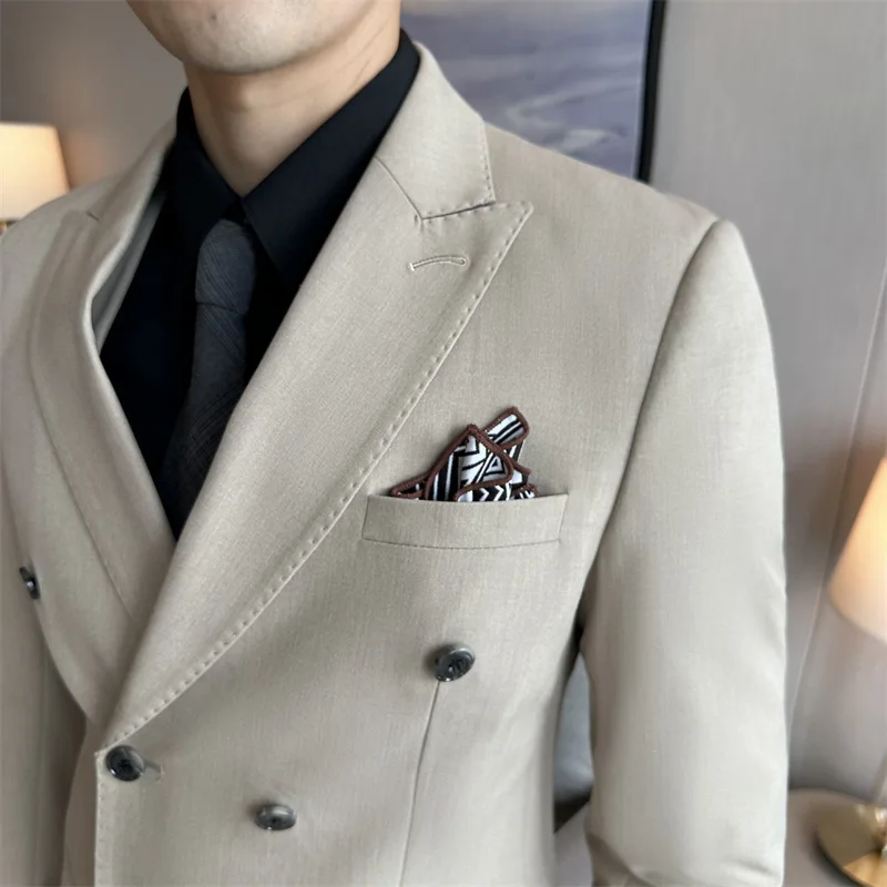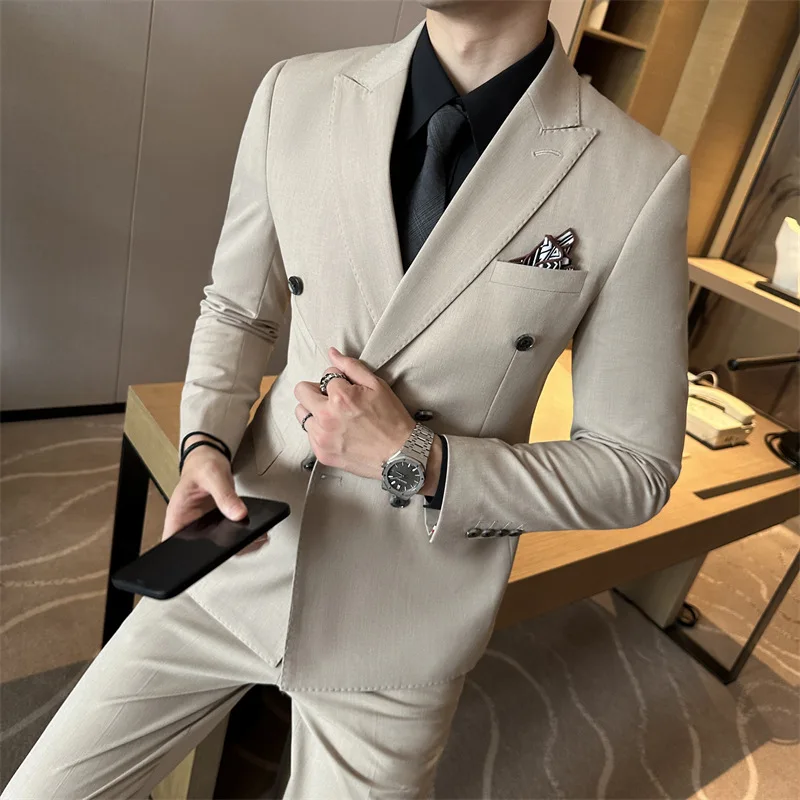 Men's Contemporary Slim Cut Notch Lapel Blazer Combo 3-Piece V-neck Dinner Jacket Attire Double Breasted Flat Business Suits