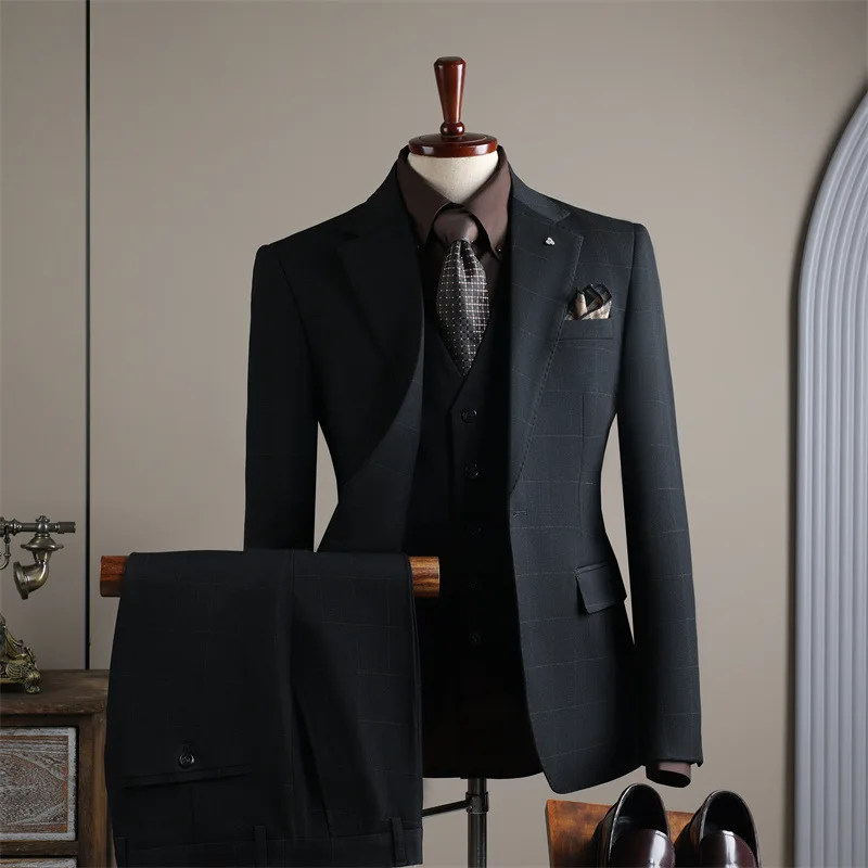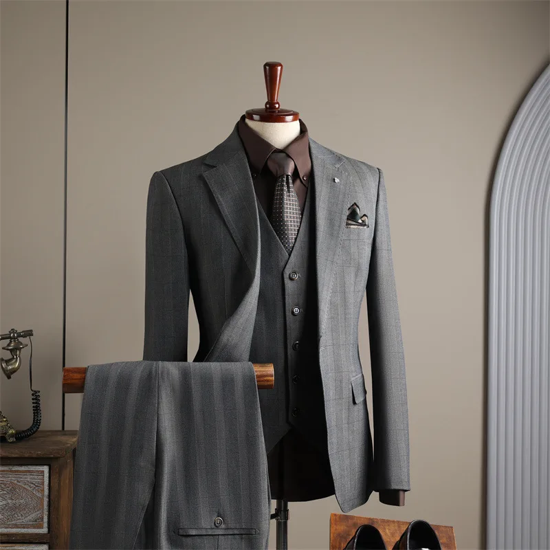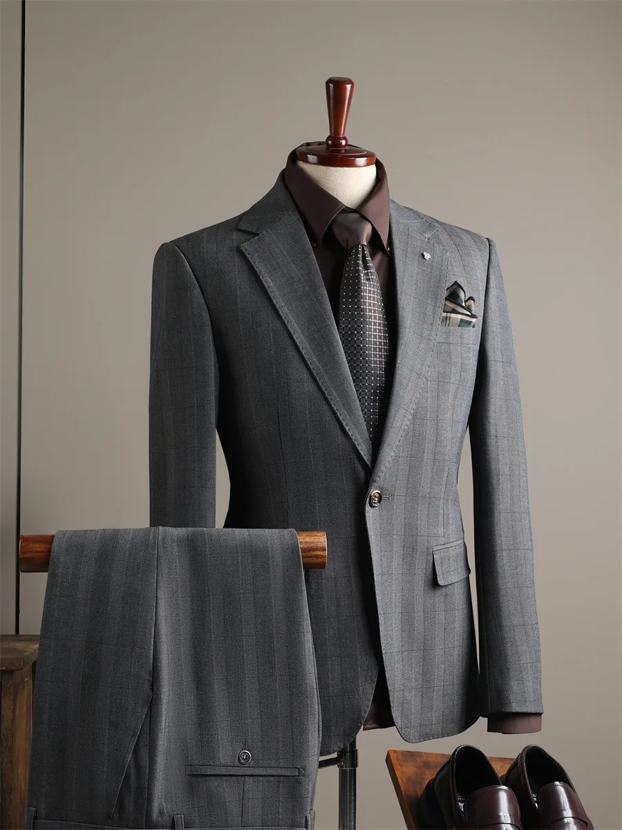 Lightweight Breathable Worsted Classic Business Men's Suits Versatile Gray Single Breasted Flat Front Year-Round Use Destination