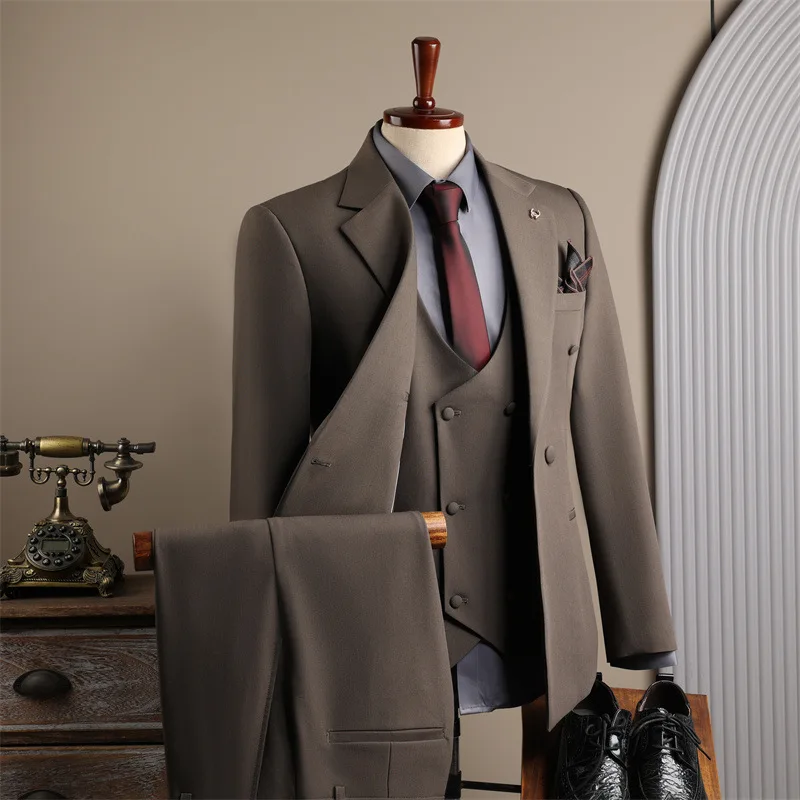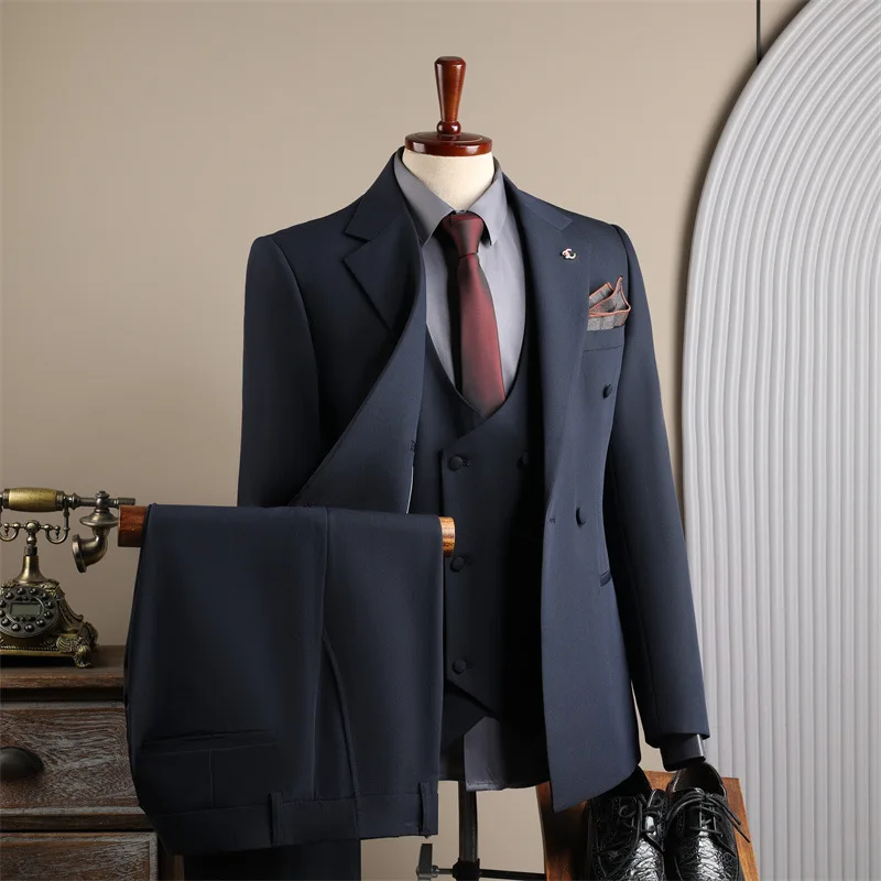 Classic Charcoal Black Men's Business Suits Breathable Anti-Wrinkle Worsted Fabric Single Breasted Tailored Fit for Graduation