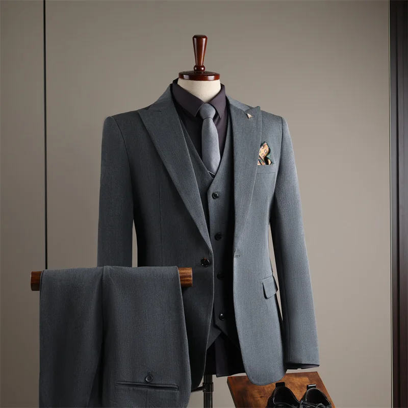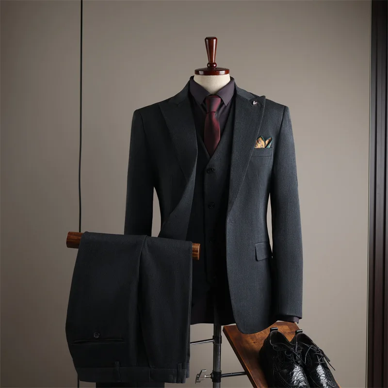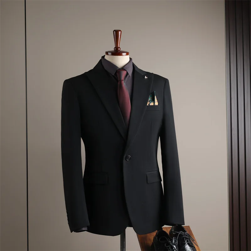 Midnight Black Men's Viscose/Polyester Business Suit Single Breasted Fitted Cut Executive Boardroom Zipper Fly Anti-Wrinkle