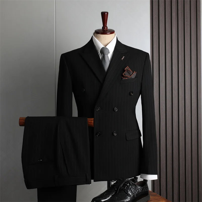 Luxury Double-Breasted Breathable Anti-Wrinkle Italian Men's Polyester Business Suits for Special Gatherings Daily Office Wear