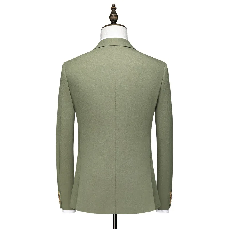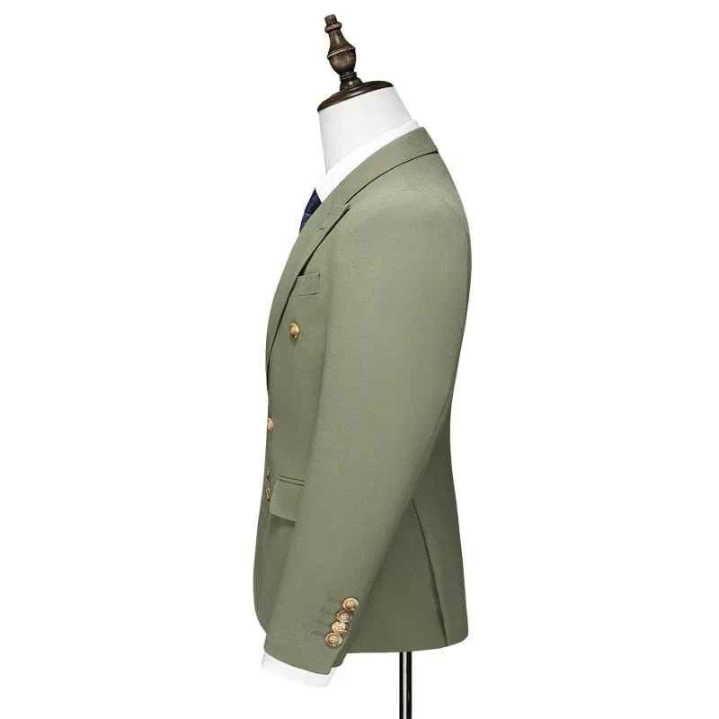 OEM Custom Service Double Breasted 3 Pieces Set Army Green Suit for Men Suits Slim Fit Set for Men Wool Wedding Suits