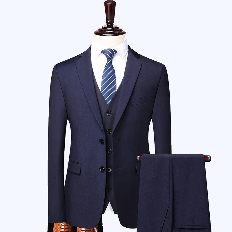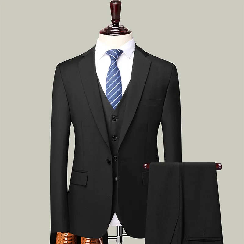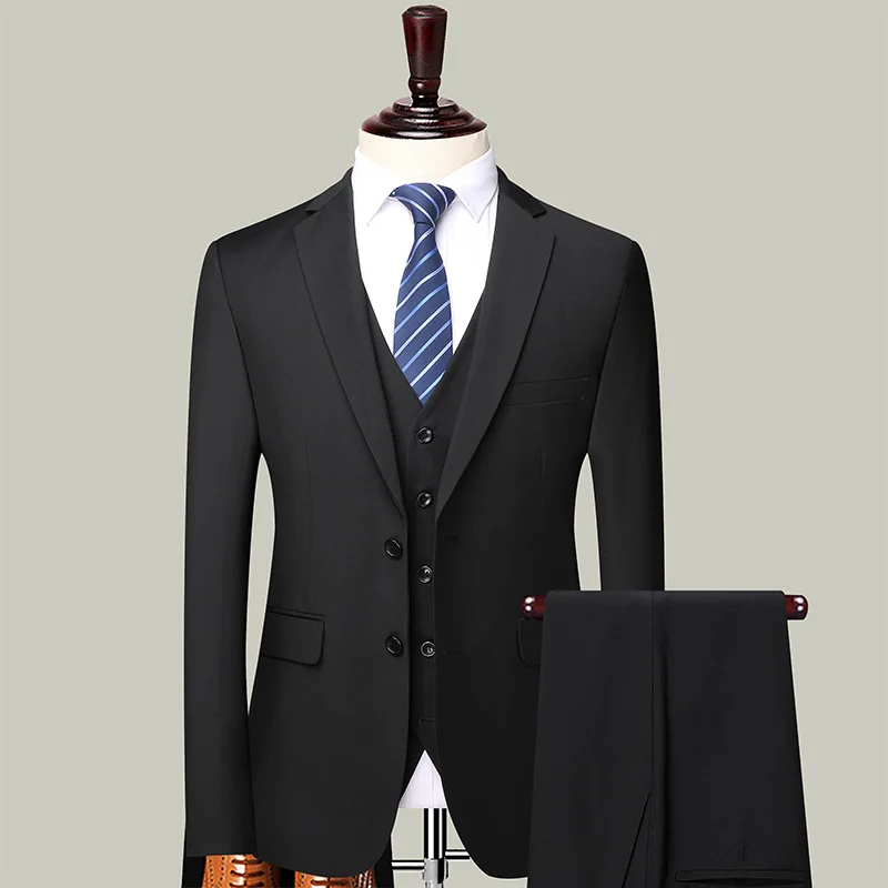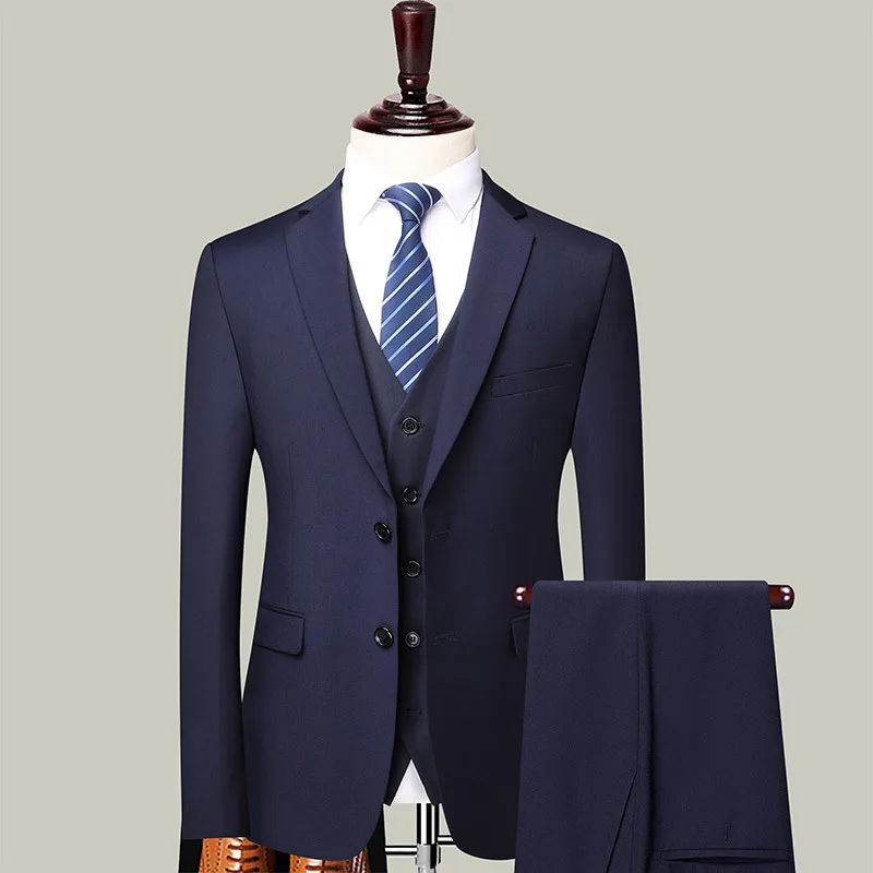 Groom Wedding Dress Wedding Best Man Large Size Men Blazer+ Pants + Vest British Style Three-piece Suit Men Suits Wedding Suit