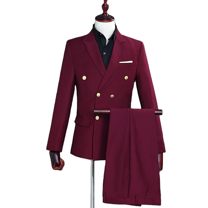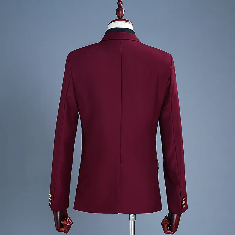 Men's Dress Suit Wine Red Double Row Gold Buckle Suit Evening Performance Dress Host Singer Annual Meeting Costume
