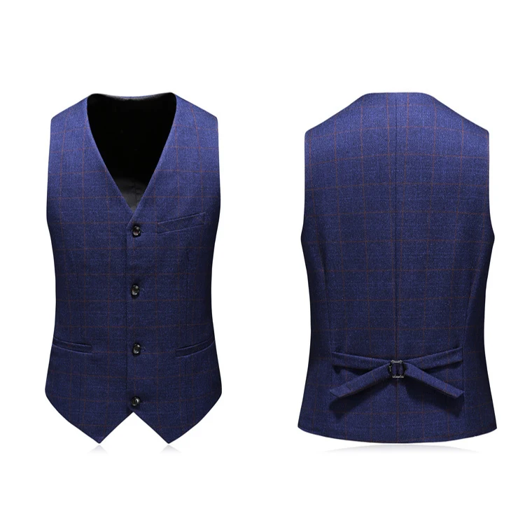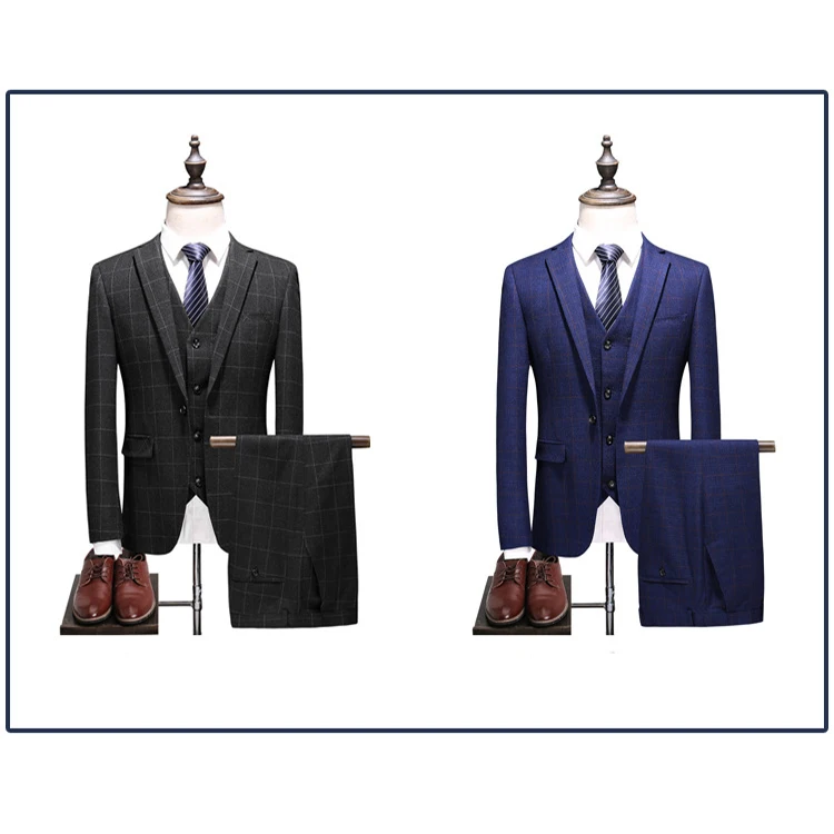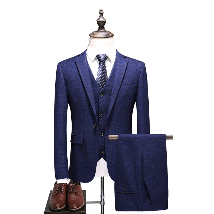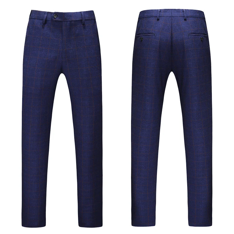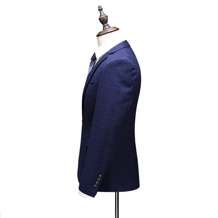 Wool High Quality Checked Royal Blue Man's Coat Pants Suit Pictures Plaid Business Wedding Suit for Men