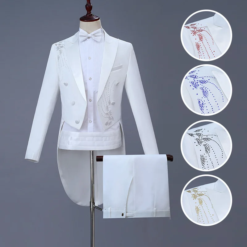 New Design Party Suit Slim for Man Fit 2 Piece Double Breasted Printed Long Sleeve Tuxedo Man Suits