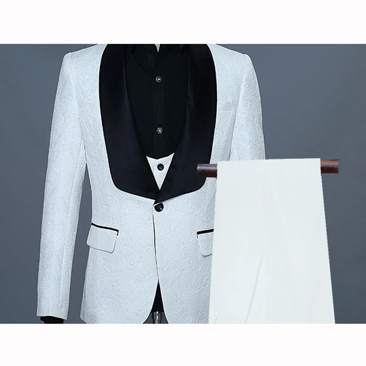 Red White Pink Suit Men Slim Fit Shawl Collar Men Suits for Wedding Fashion Jacquard 3 Piece Prom Suits
