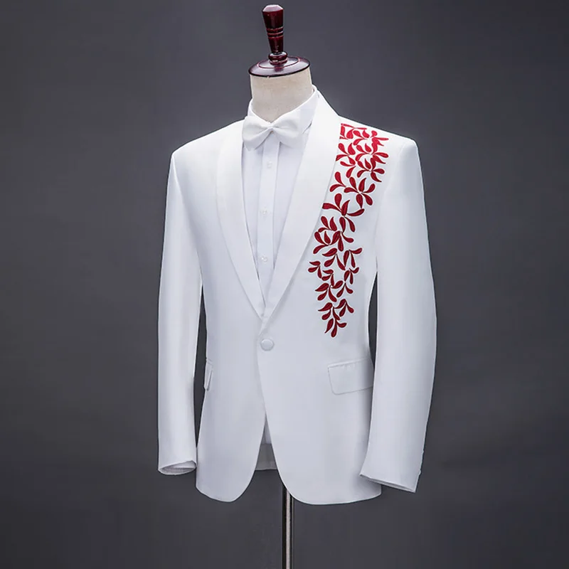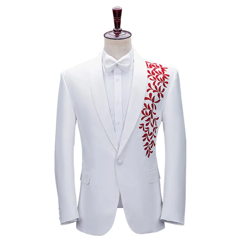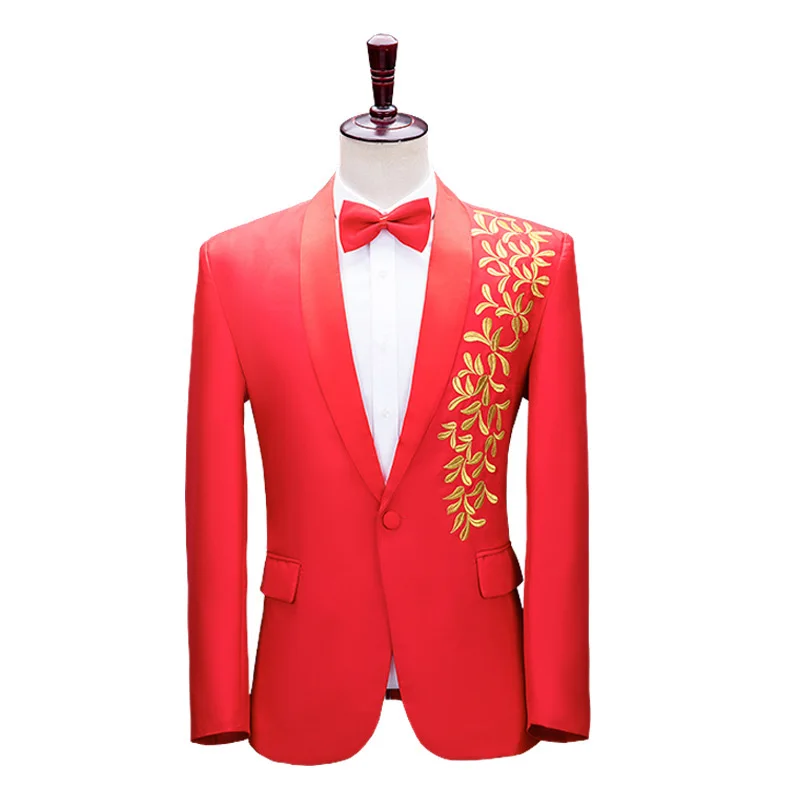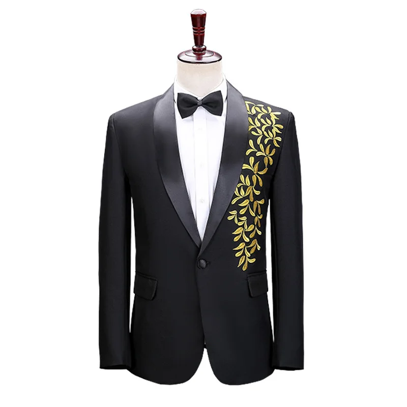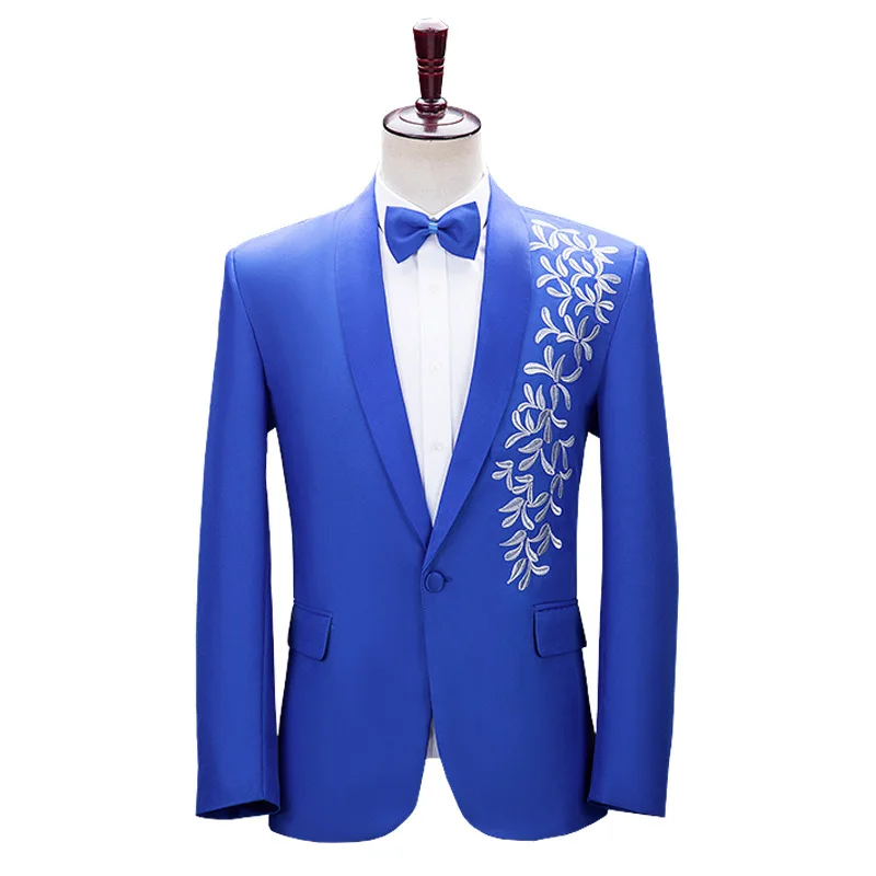 Men's Roll Collar Embroidered Suit Set Stage Grand Choir Performance Clothes Host