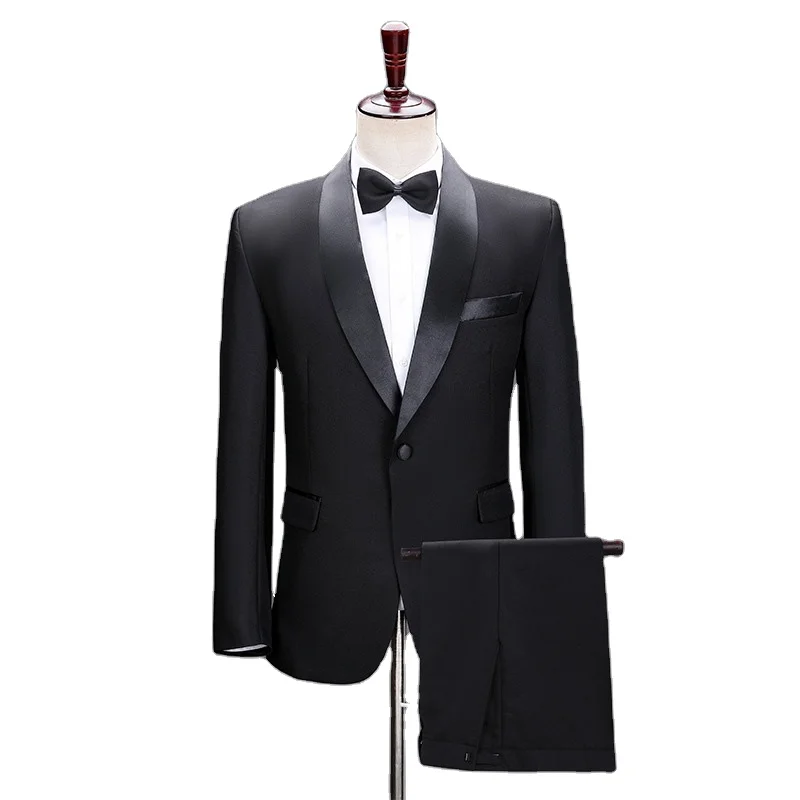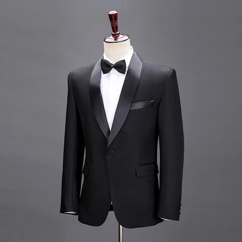 Black White Performance Suit Host Suit Stage Speech Performance Handsome and Fashionable Groom Wear