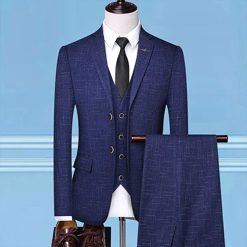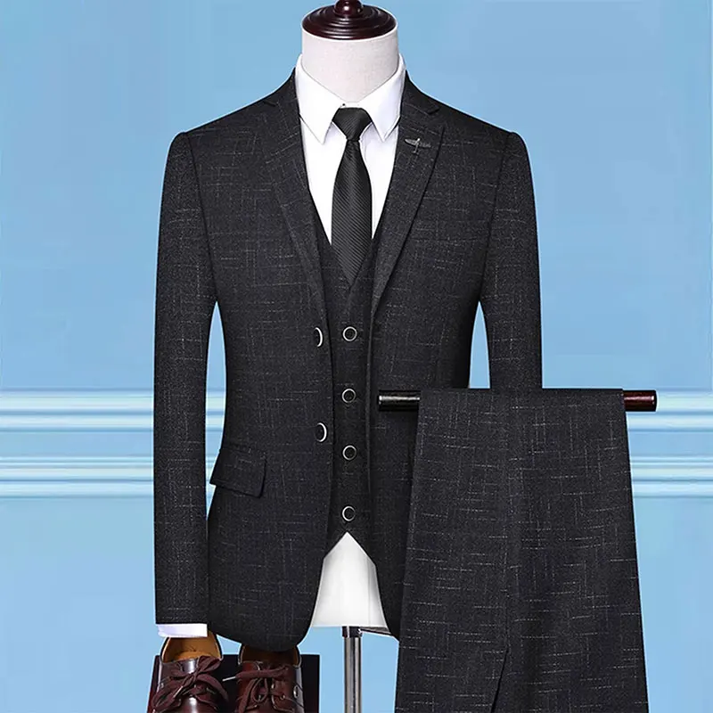 Manufacturers Wholesale Slim Stripe Suit 3PCS Suit Pants Vest Men's Business Suit Wedding Dress Best