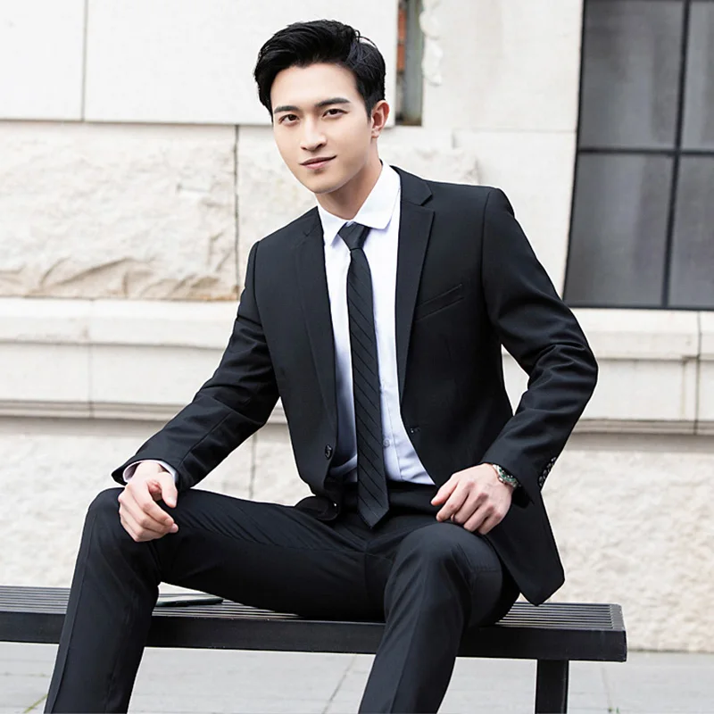 Business Men Suits 2 Pieces Groom Tuxedos Green Flat Collar Wedding Suits Clothing Black Casual Pants Viscose Set
