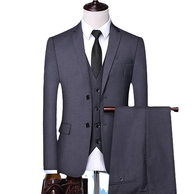 Men's Suit Solid Color Business Formal Dress Groom Wedding Best Man Dress Suit Two Buttons 3pcs Suit Pants Vest