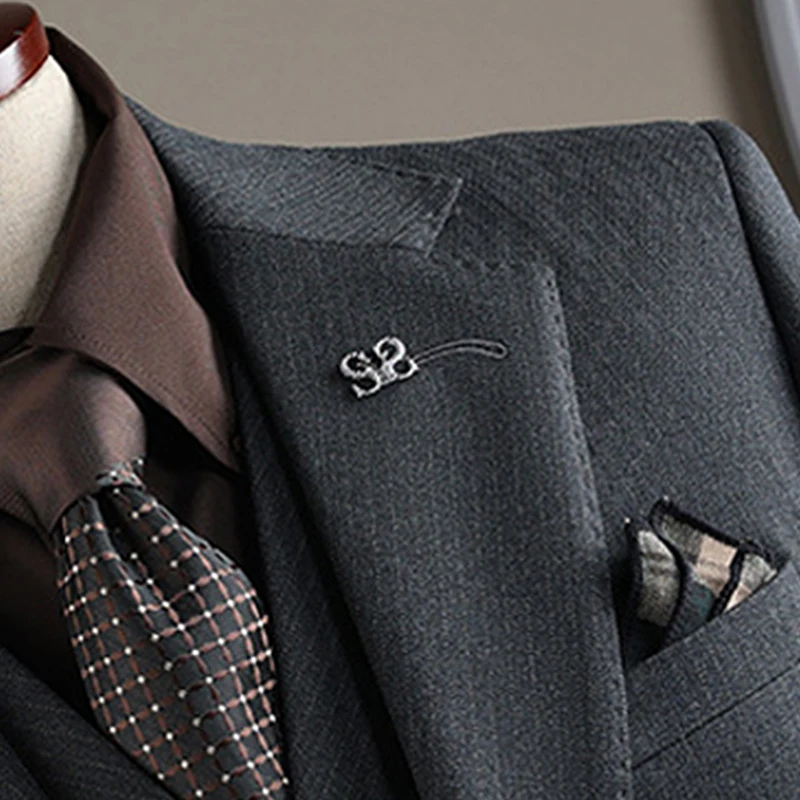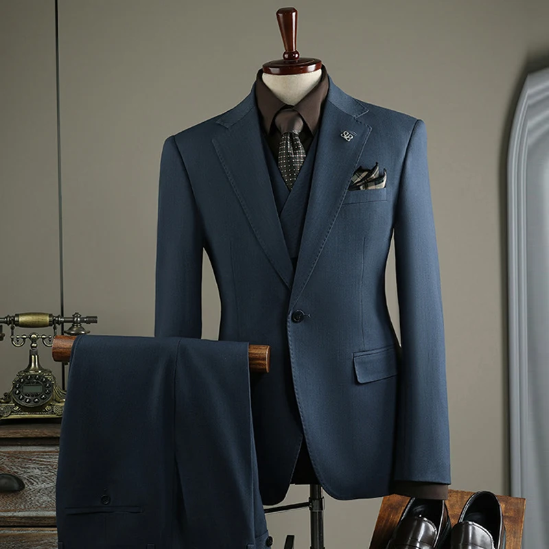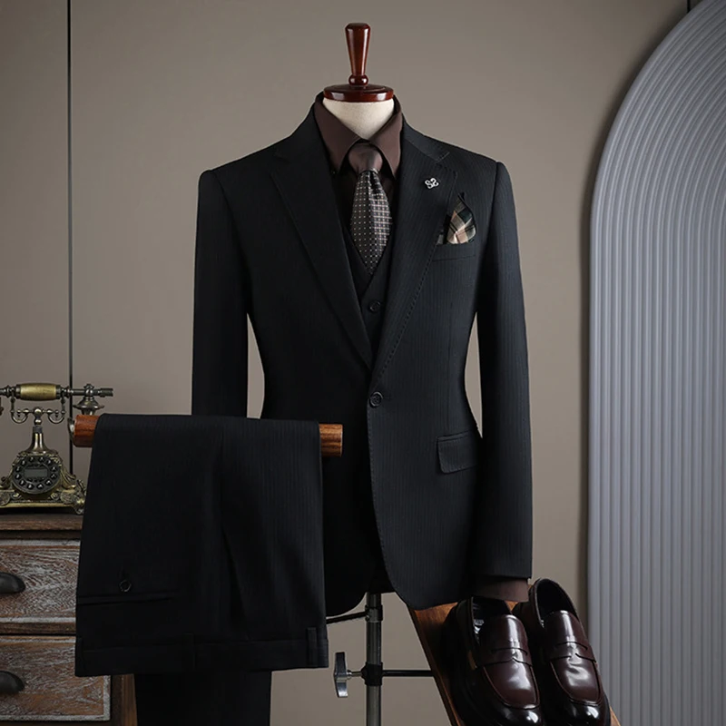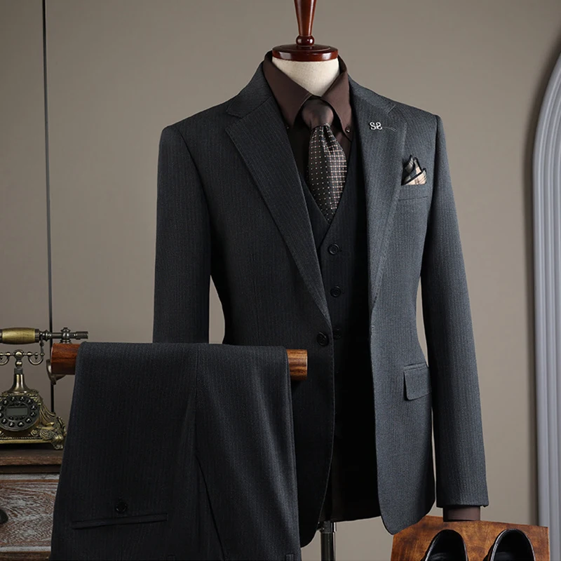 Men's Striped Business Suit European American Style Two-Piece Set with One Buckle Slim Fit Plus Size Formal Wedding Groom Suit