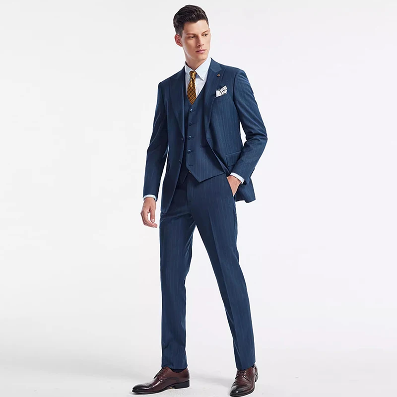 Senior British Style Striped Suit Customized Men's Formal Wedding Groom Business Single-breasted High-grade Three-piece Suit