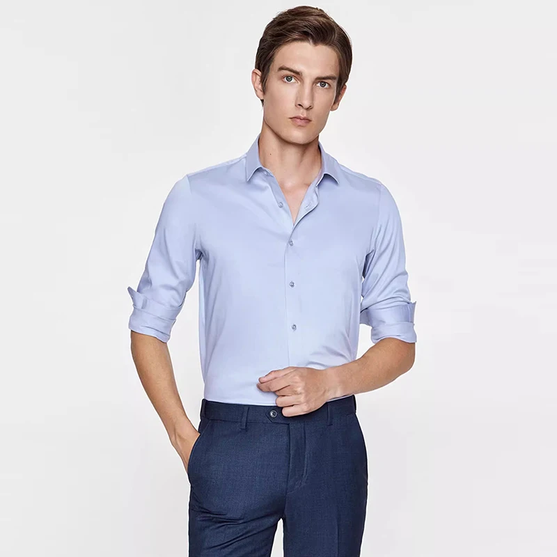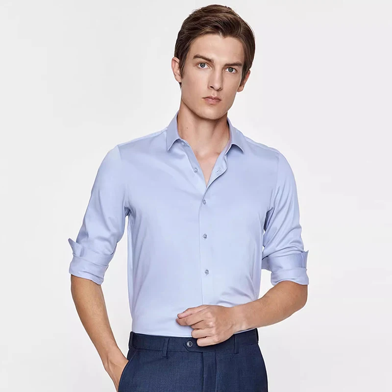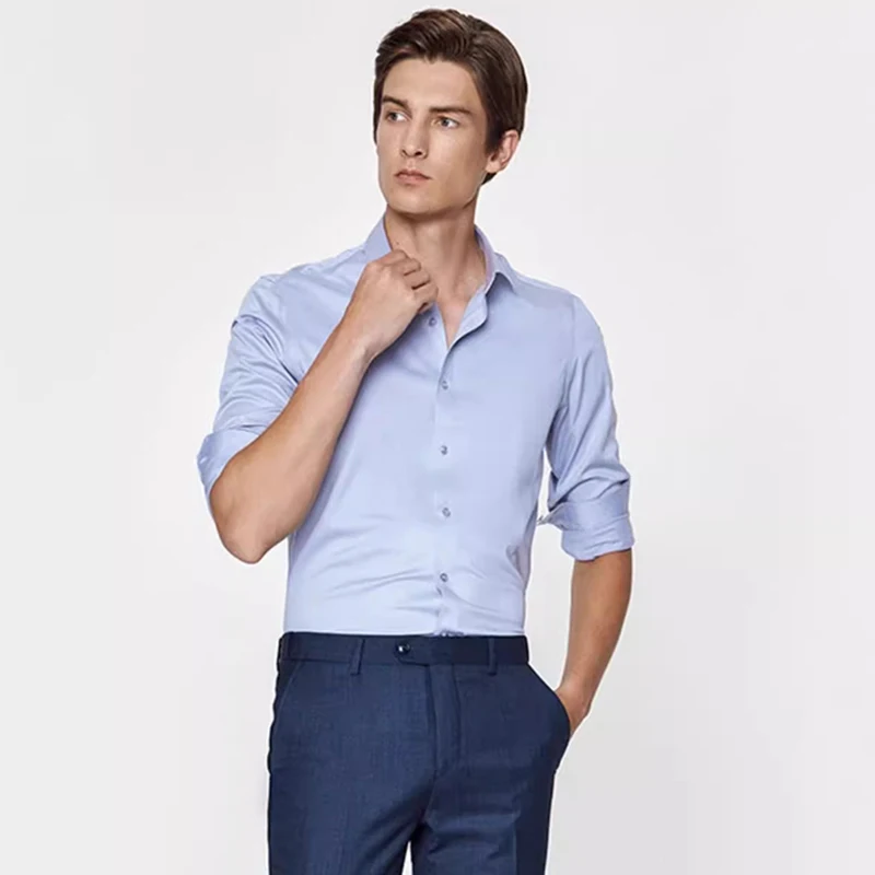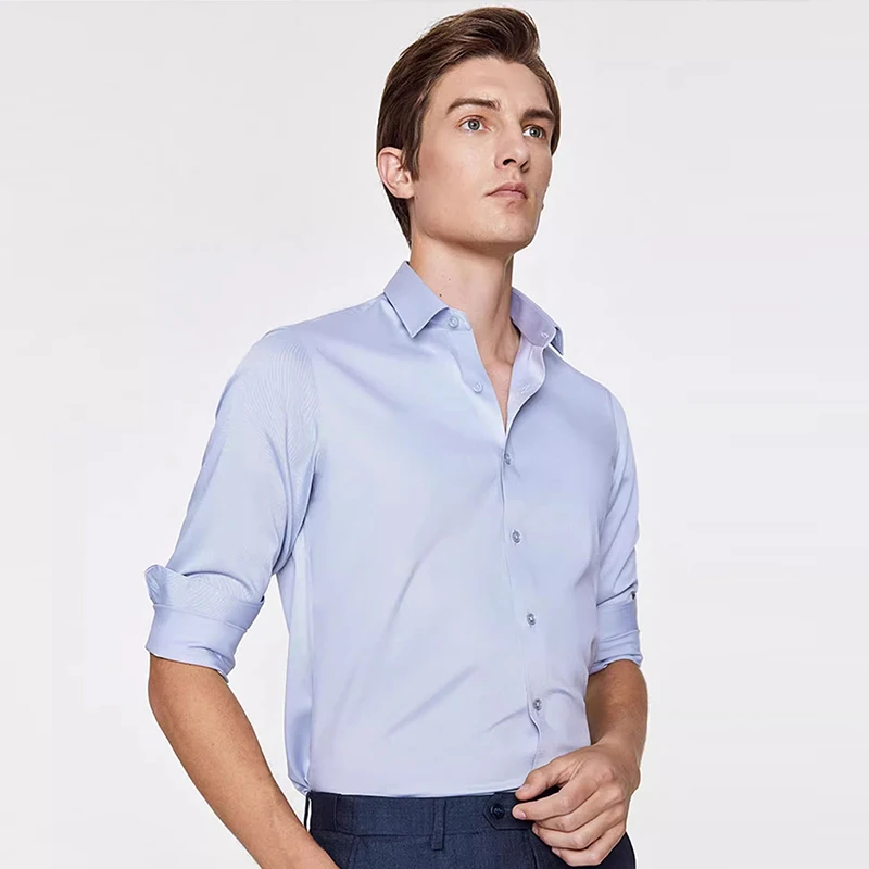 Hot Sale Premium Non-Iron Men's Dress Shirt Business White Square Collar Sky Blue Wedding Fashion Breathable Business Wedding