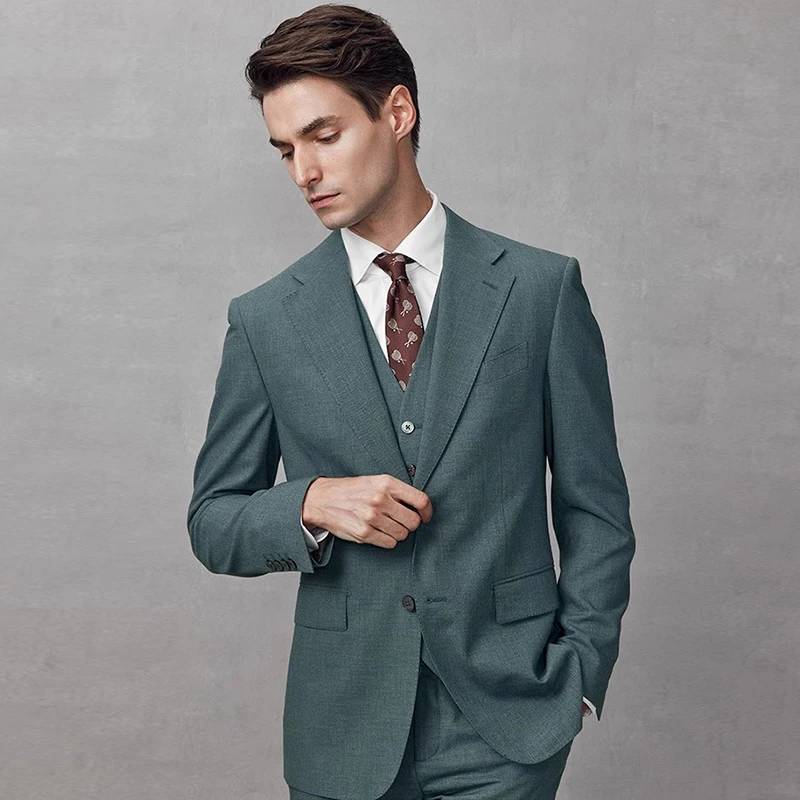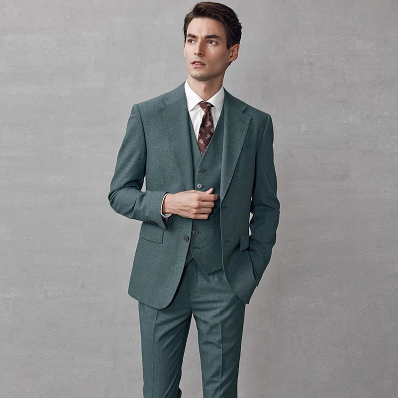 Customized Dark Green Solid Color Suit Men's Formal Wedding Groom Business Exquisite Two Button High Grade blazer for Men