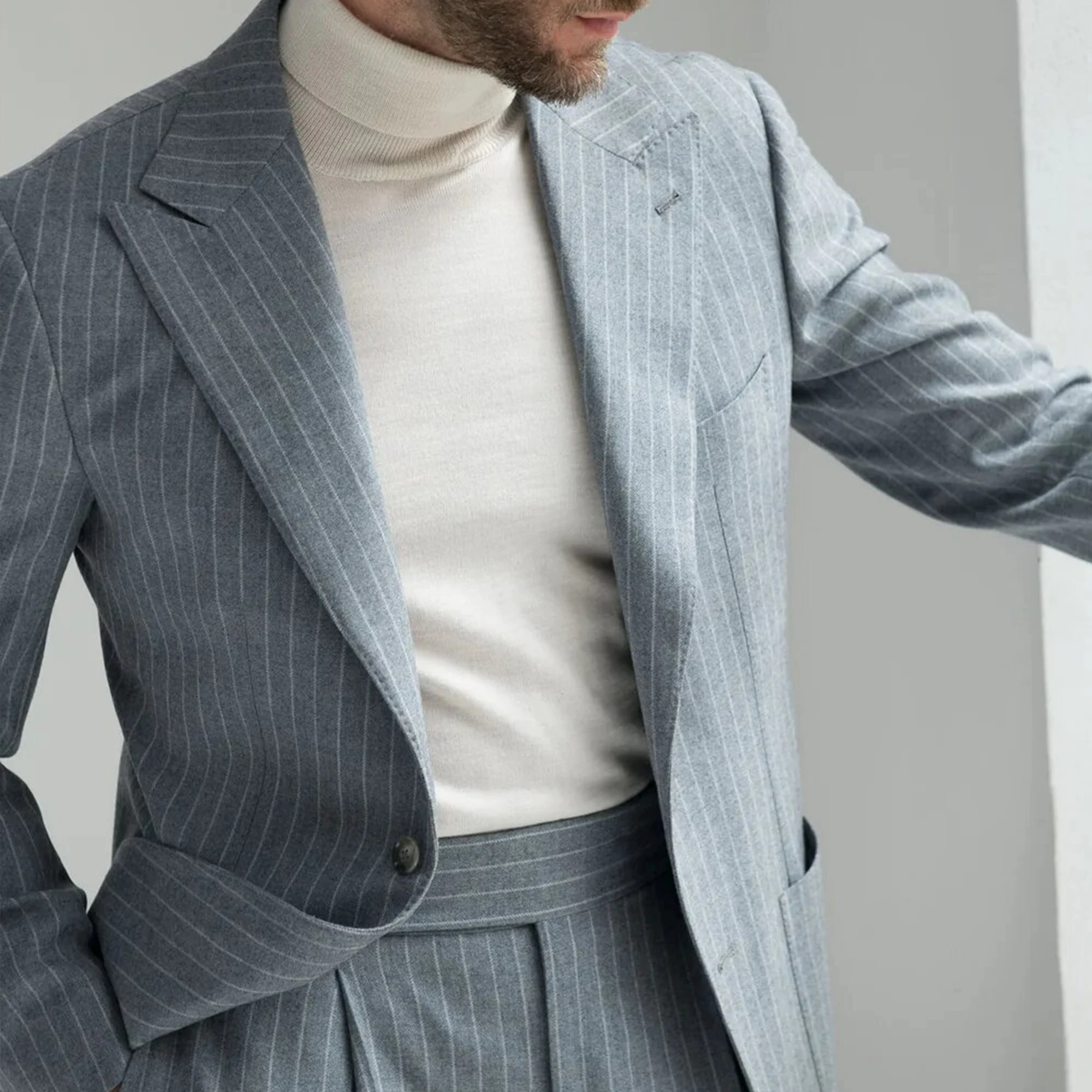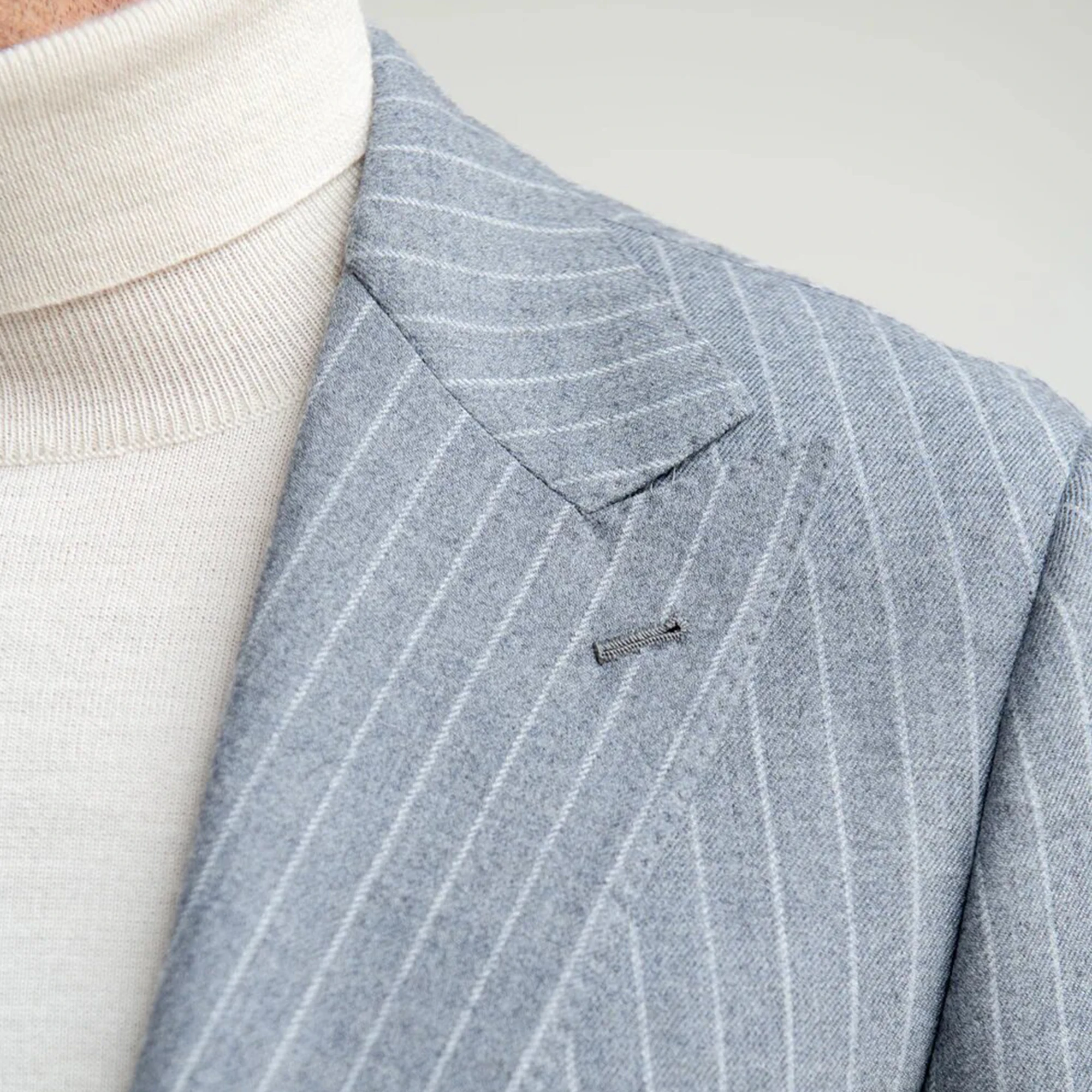 Customized Gray Striped Men's Suits Formal Wedding Groom Business Exquisite One Button High Grade Dress Two Piece Set