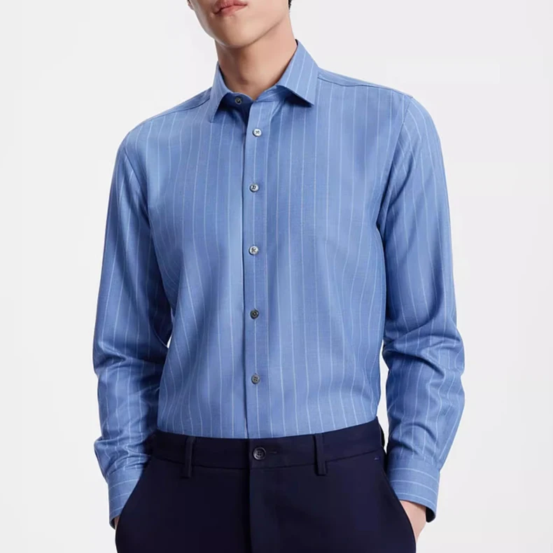Men's Shirt Wool Blend Casual Long Sleeve Formal Single-Breasted Slim Fit Striped Shirt Business Minimalist Shirt