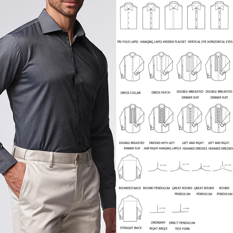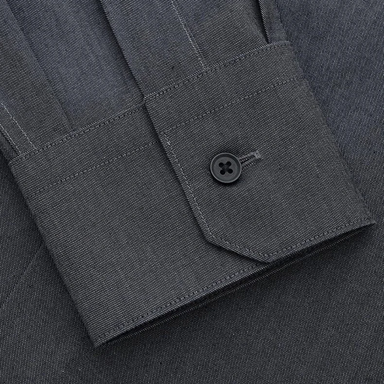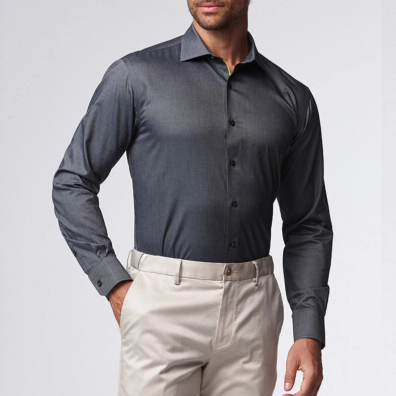 Men Shirt 100% Cotton Casual Long-Sleeve Gray Shirt Formal Single-Breasted Slim-Fit Professional Wear Business Minimalist Shirt