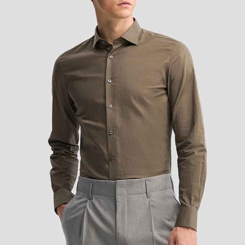 Men's Linen-Blend Casual Long-Sleeve Collared Shirt Formal Single-Breasted Slim Fit Professional Business Minimalist Shirt