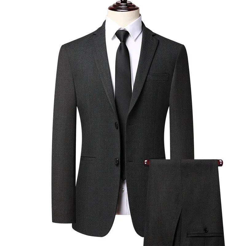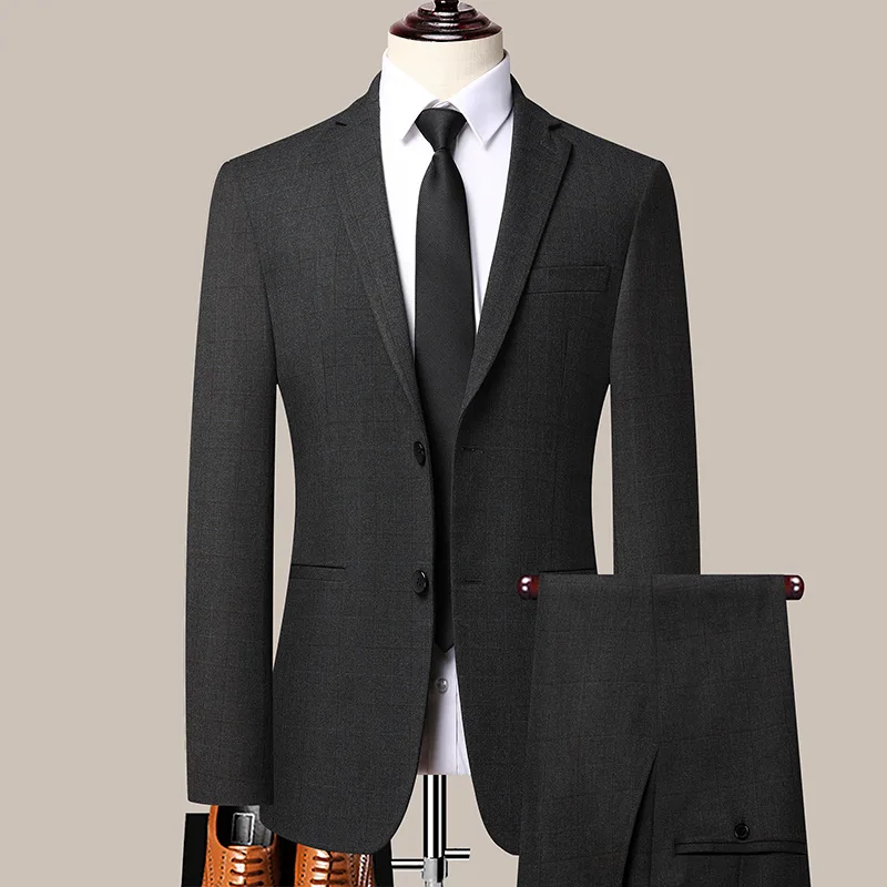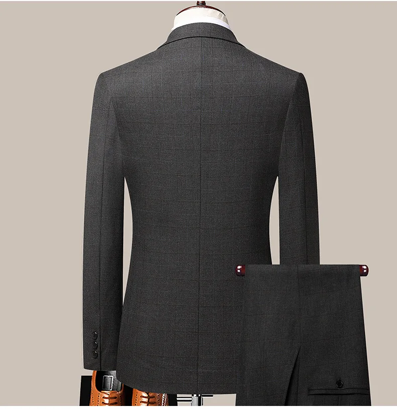 Men's Premium Two-Piece Checkered Suit Breathable Exquisite Business Formal for Wedding or Groom Homme De Luxe Style