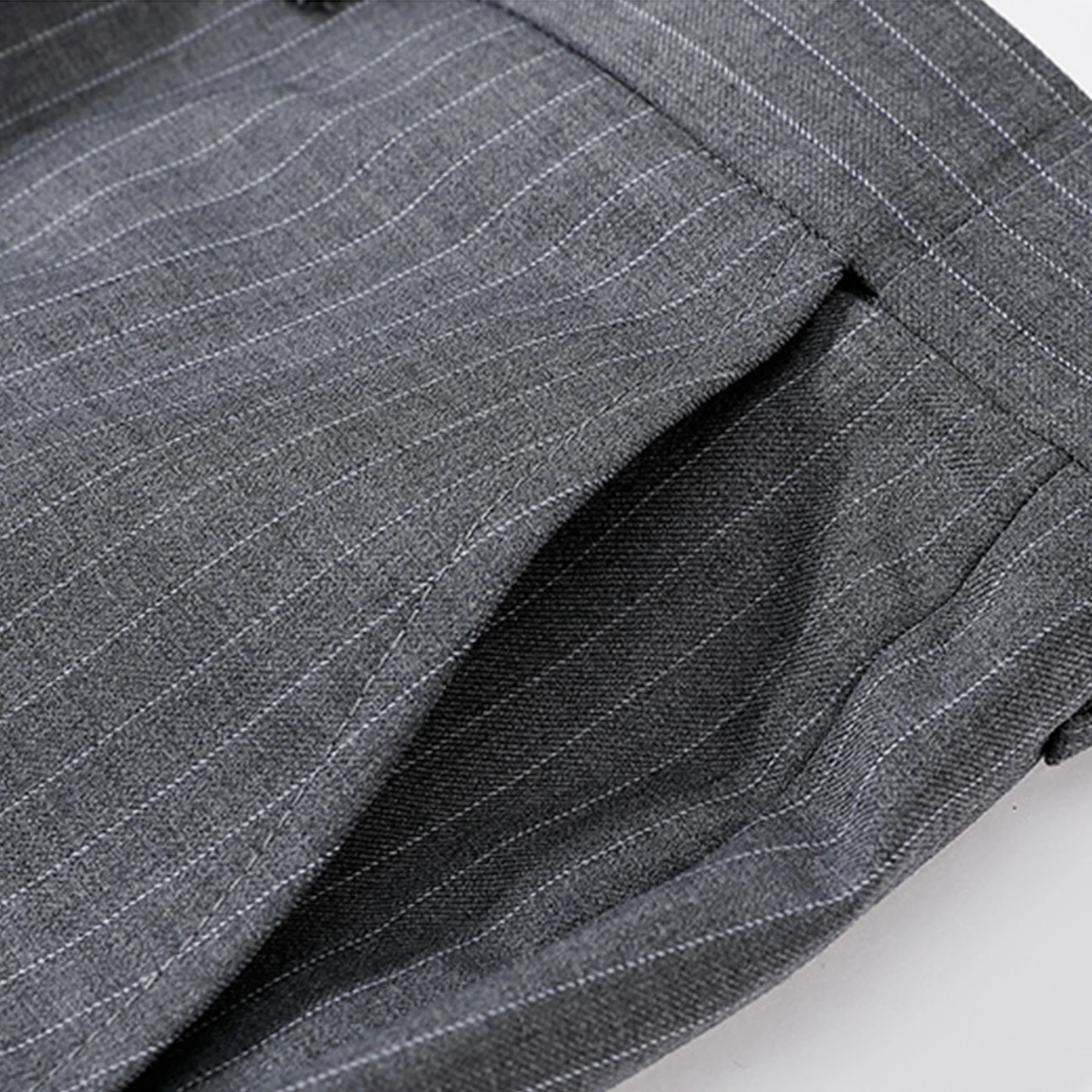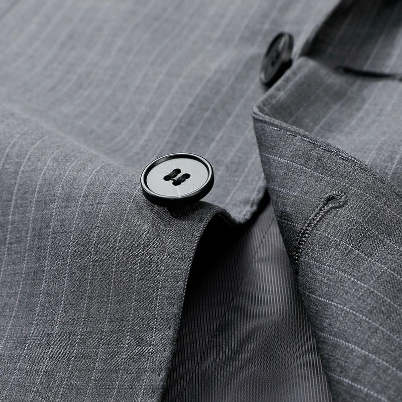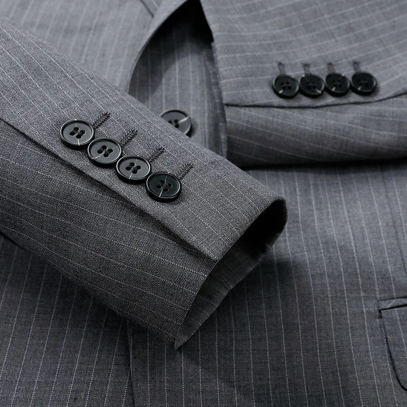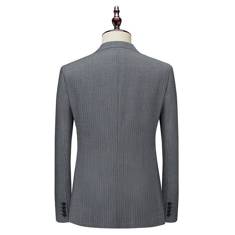 Premium Gray Striped Wool Men's Suits Slim England Wedding Groom Dress Business Suit Plus Pants Two Piece Set