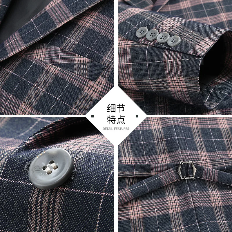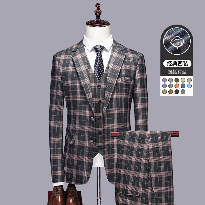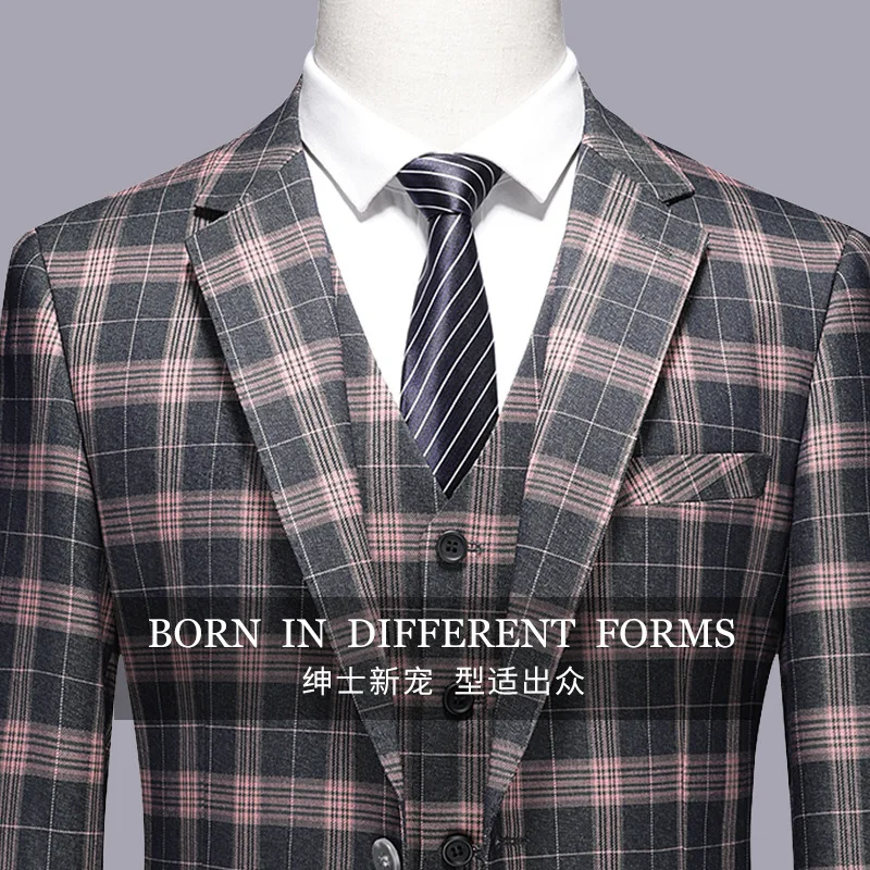 Men's Suits Wedding Groom Three-piece Set of Two-button British Plaid Slim Europe and the United States Formal Casual Suit