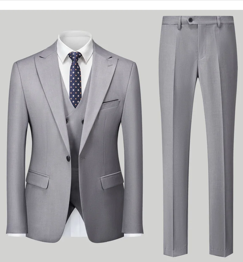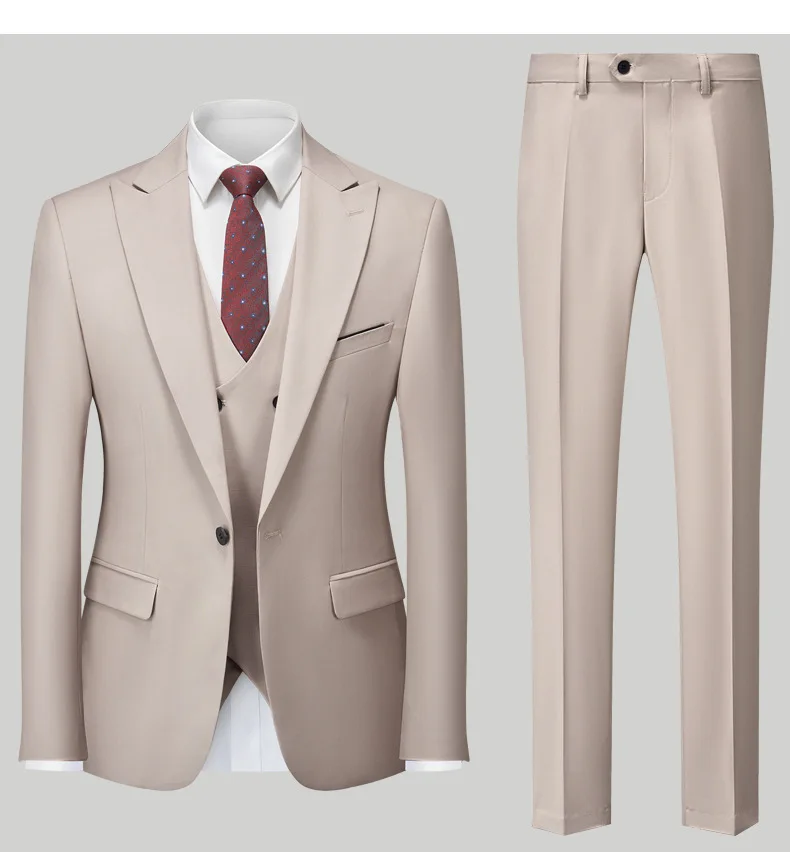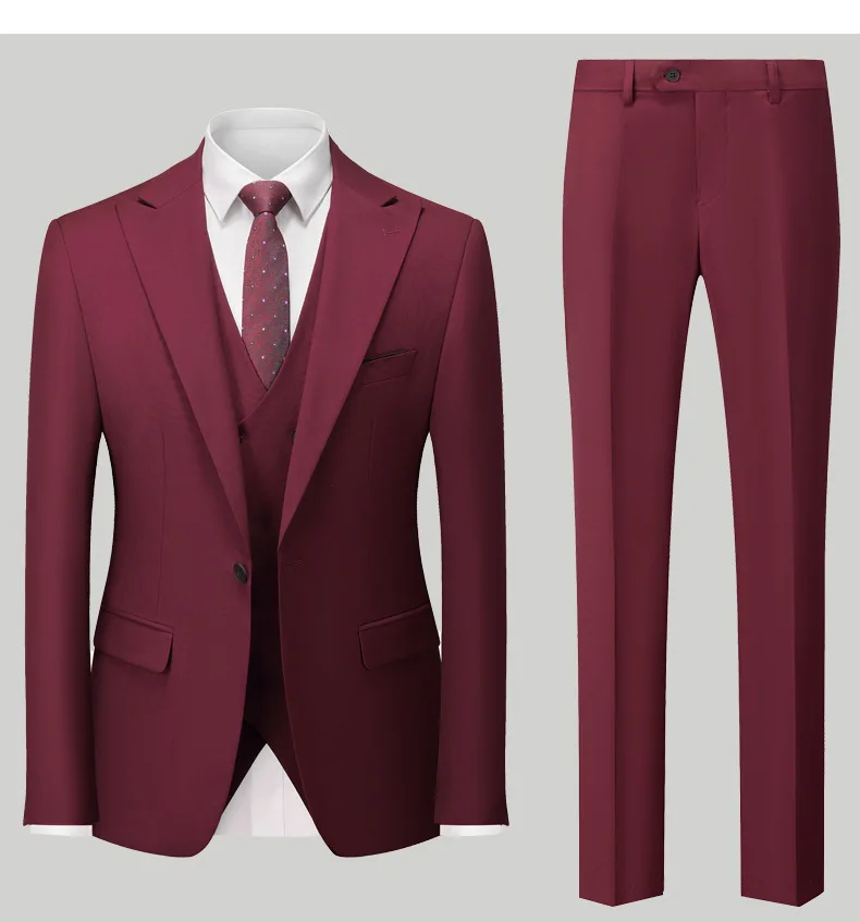 Suit for Men Wedding Groom Three-piece Set of One Buckle Korean Slim Europe and the United States Solid Color Men's Suits