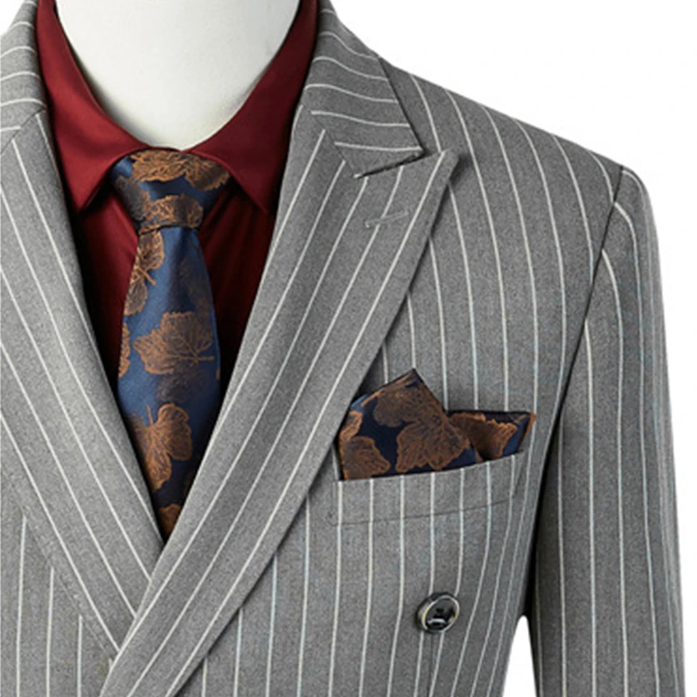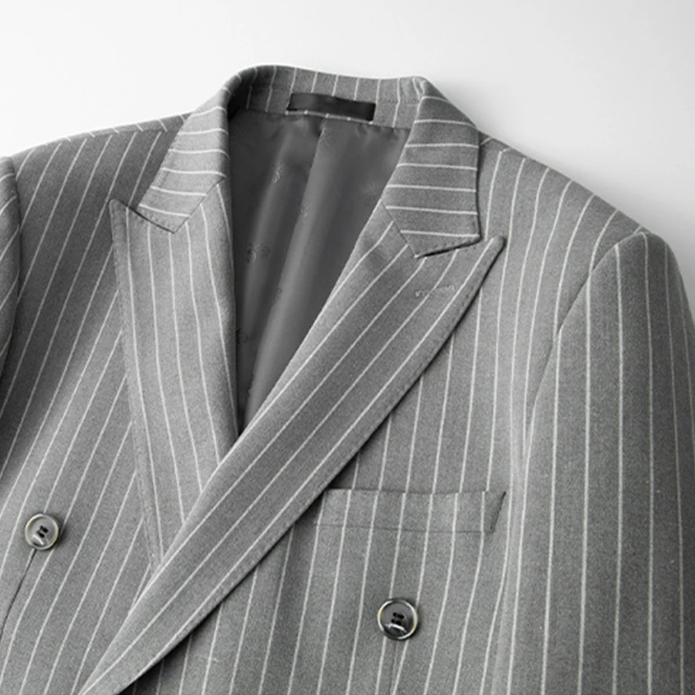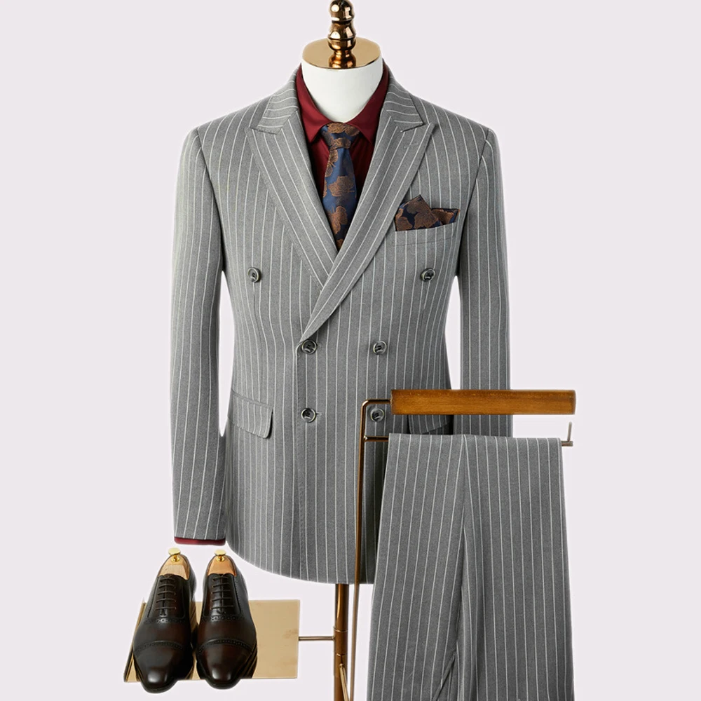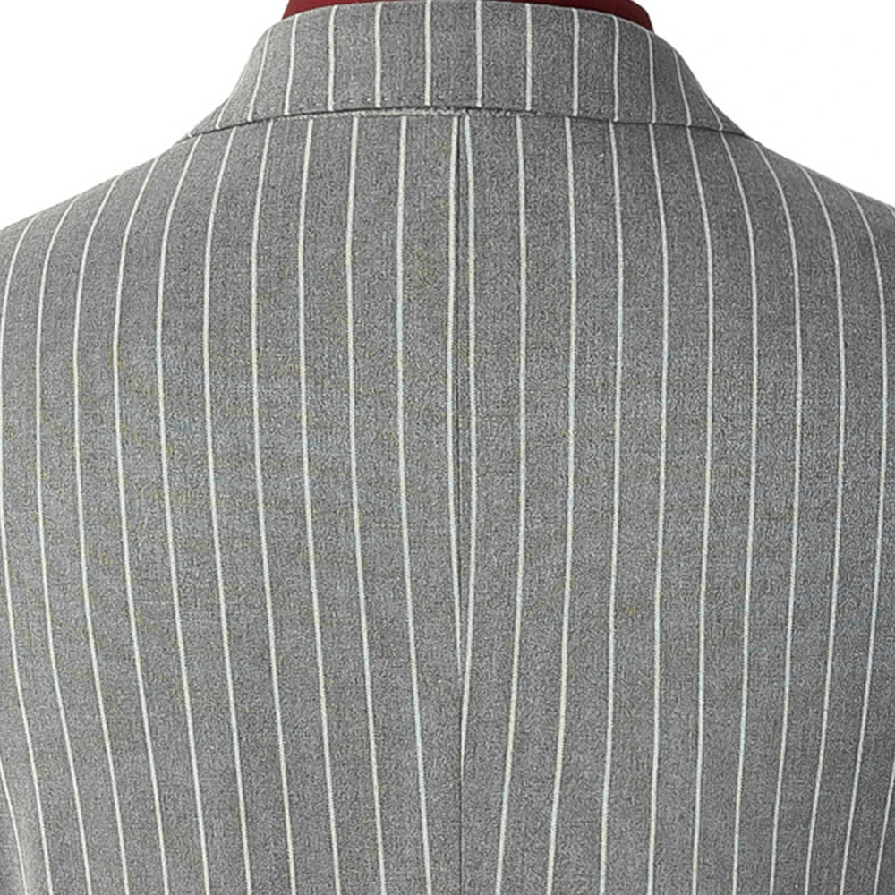 Bump Collar Men's Wedding Suit Two-piece Business Professional Gray Striped Comfortable Best Man Groom Formal Workwear
