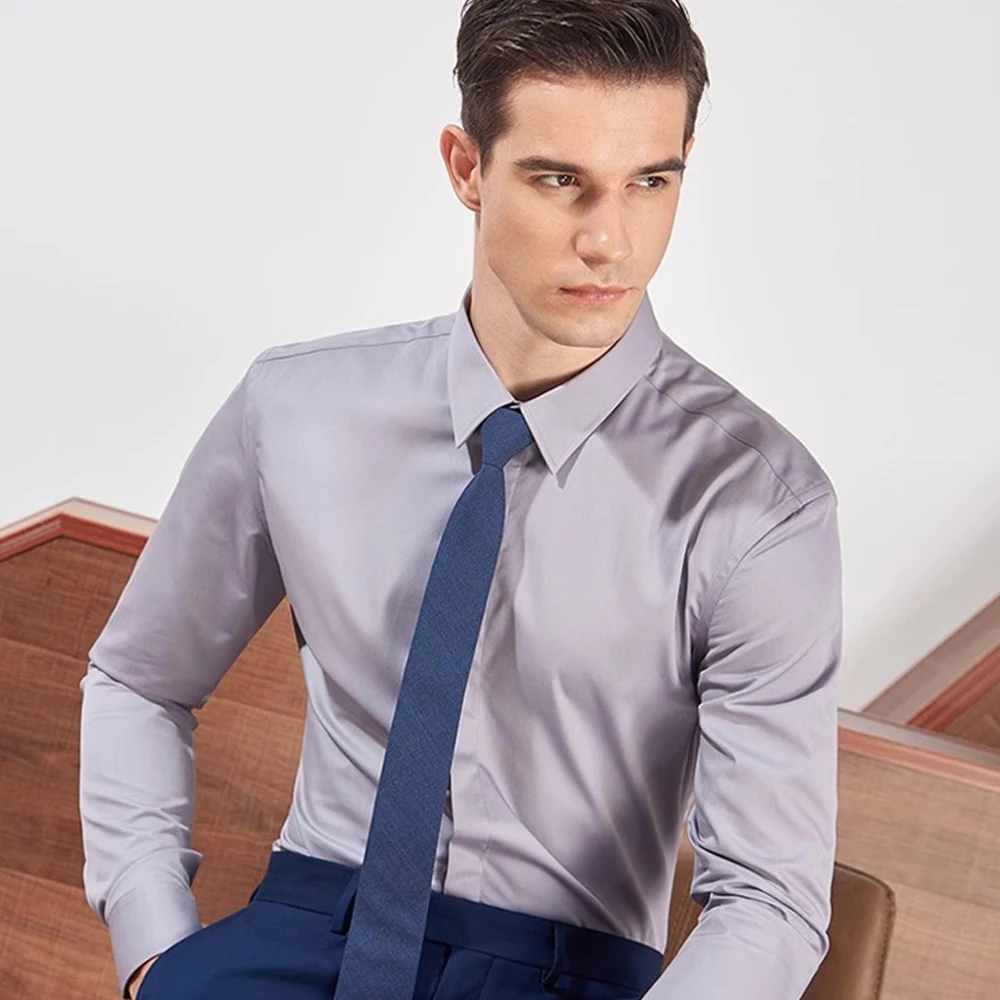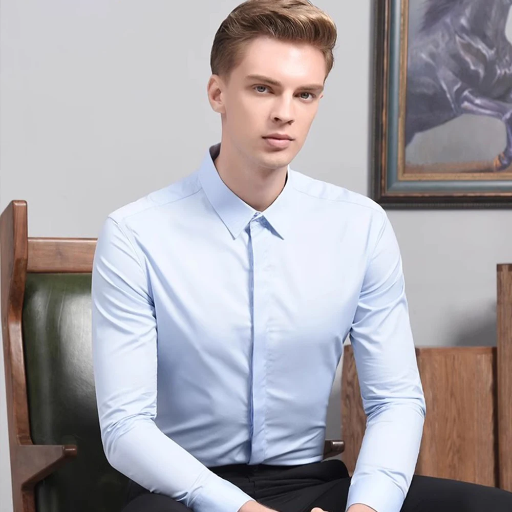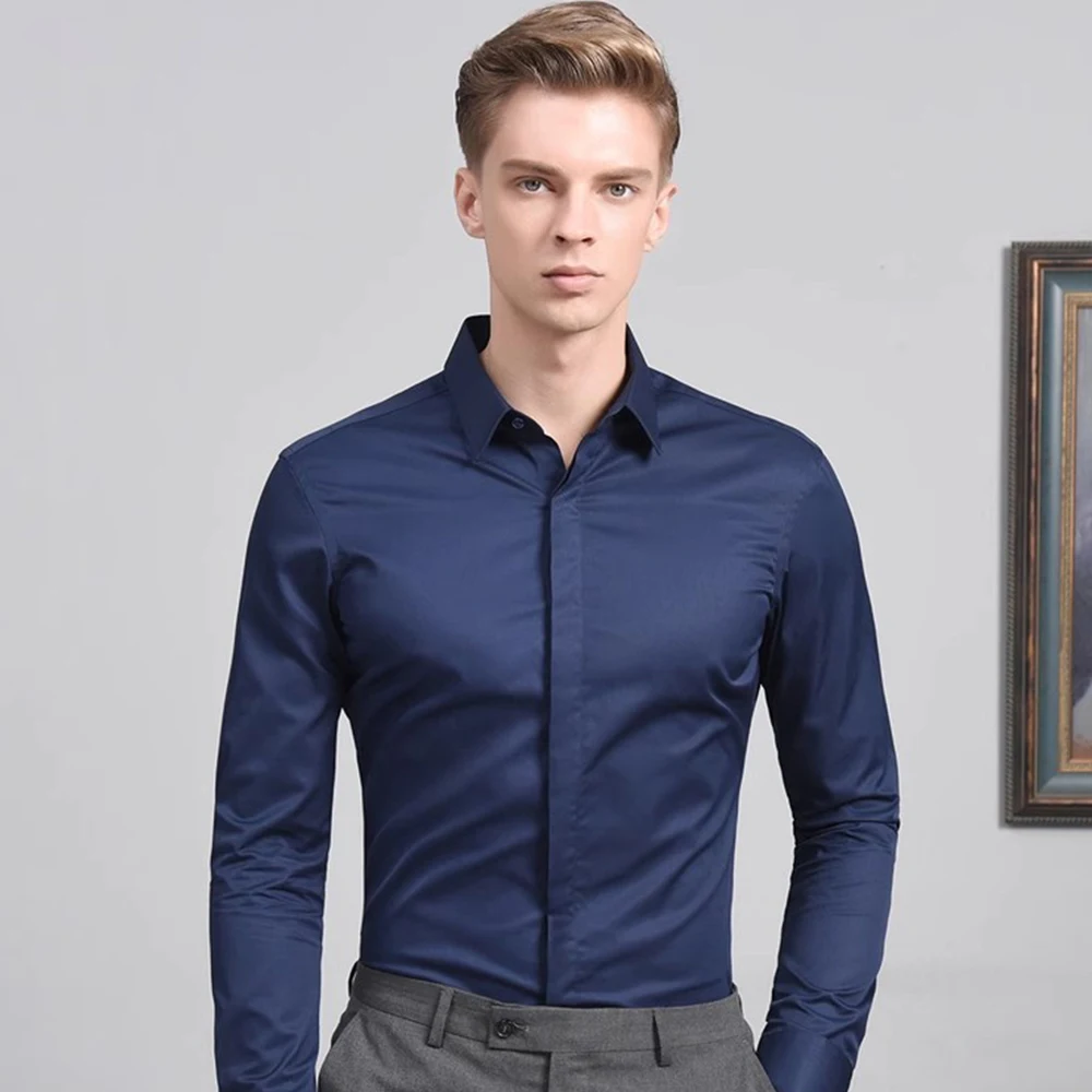 Hot Sale Business White Shirt Men's Anti-wrinkle Professional Dark Placket Solid Color Shirt Wedding 100% Cotton / Dress