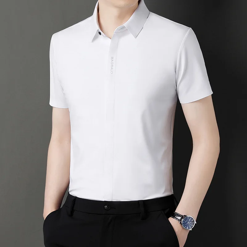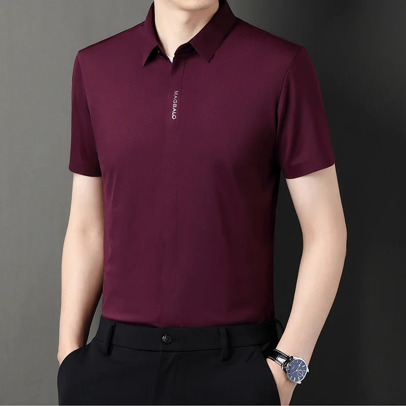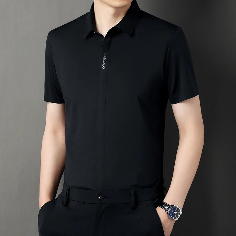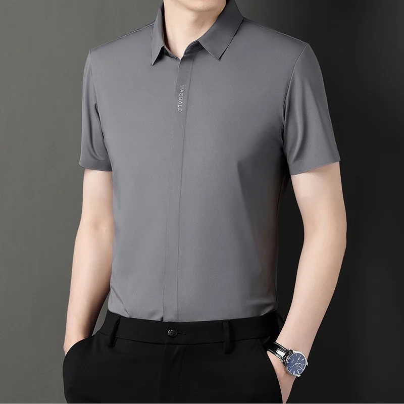 European and American Men's Ice Silk Solid Color Casual High Elastic Slim Short-sleeved Shirt Wedding Dress Manufacturer