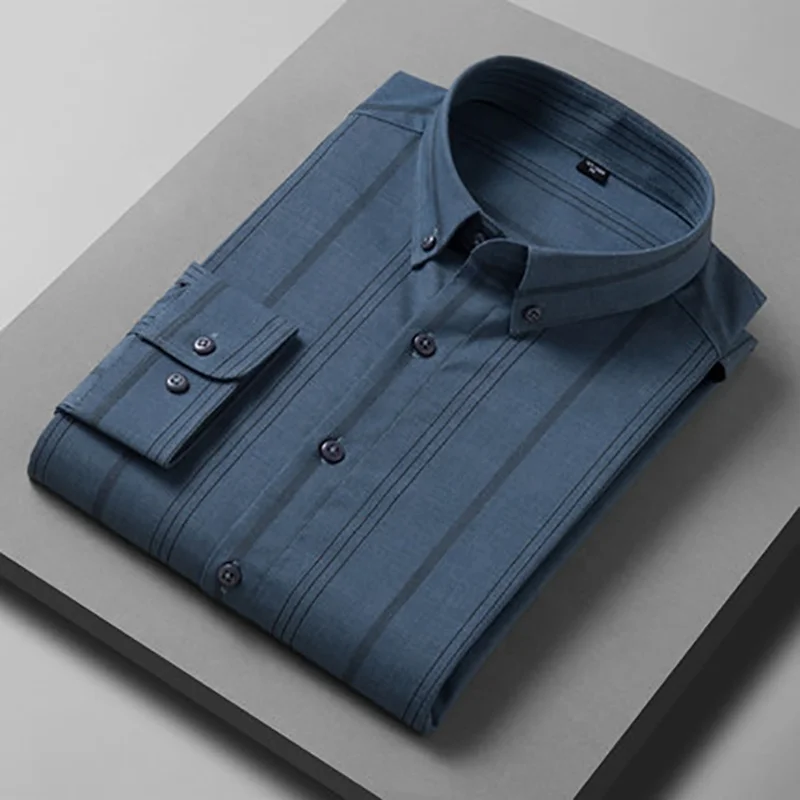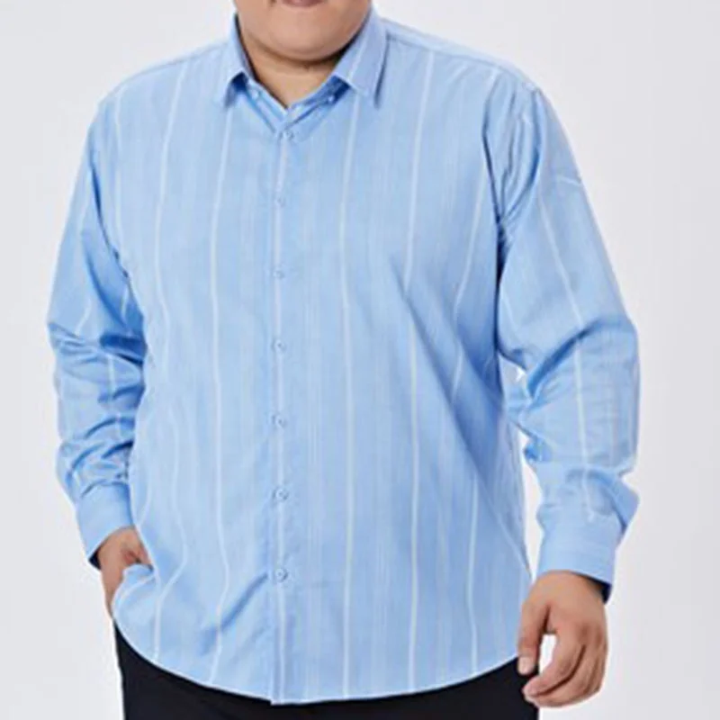 Large Size Shirt Quality Anti-wrinkle 3XL-11XL Plus Size Long Sleeve Striped Casual Shirt Elastic Oversized Shirt for Men