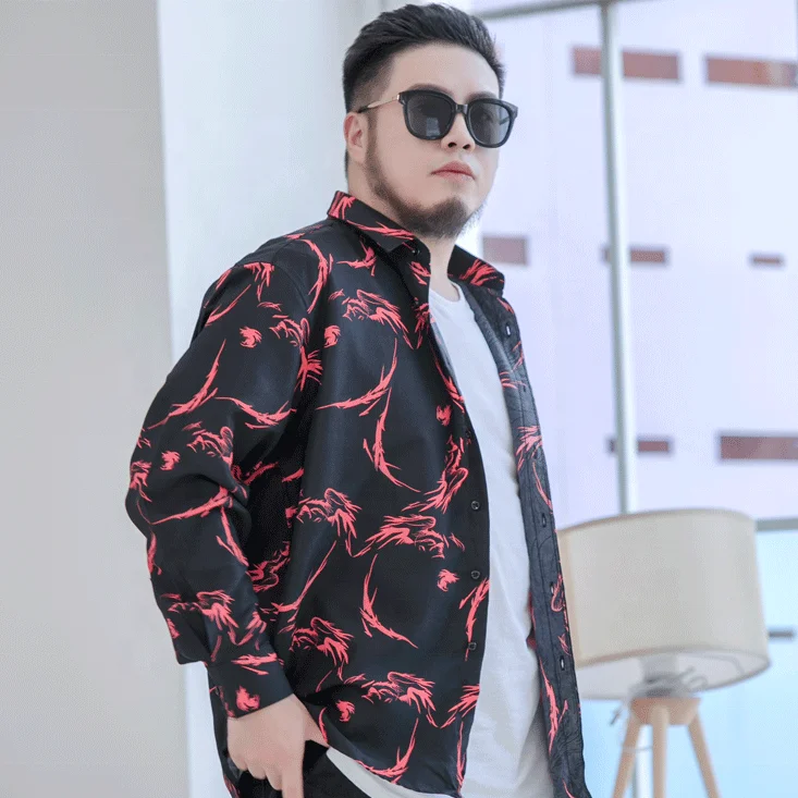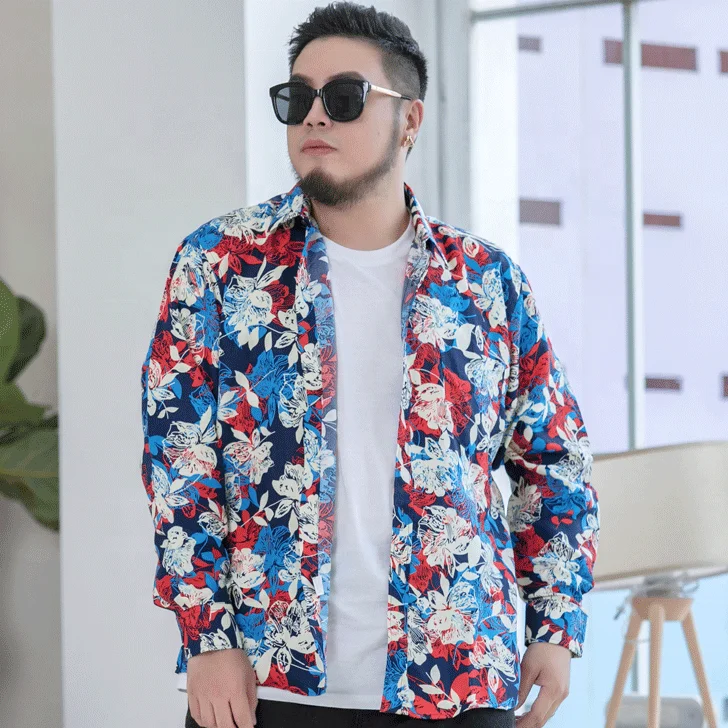 Wholesale Custom Printing High Quality Large Size Long Sleeve Floral Shirts for Men