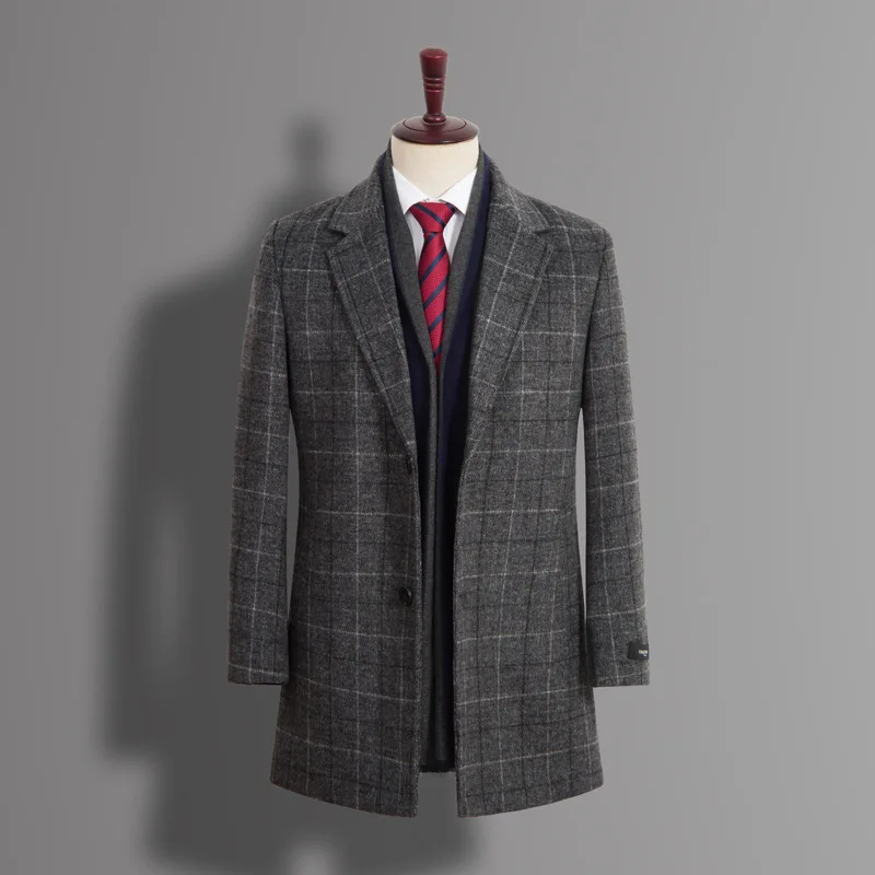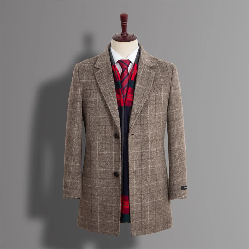 Plus-size Autumn&winter Coat Suit British Men's Long Sleeve Single Breasted Tweed Coat