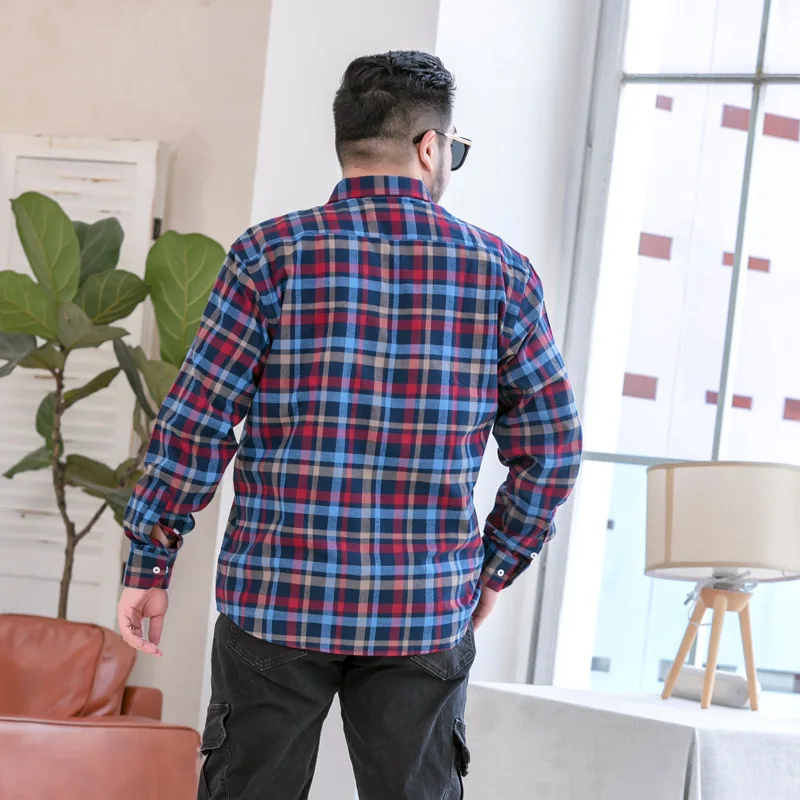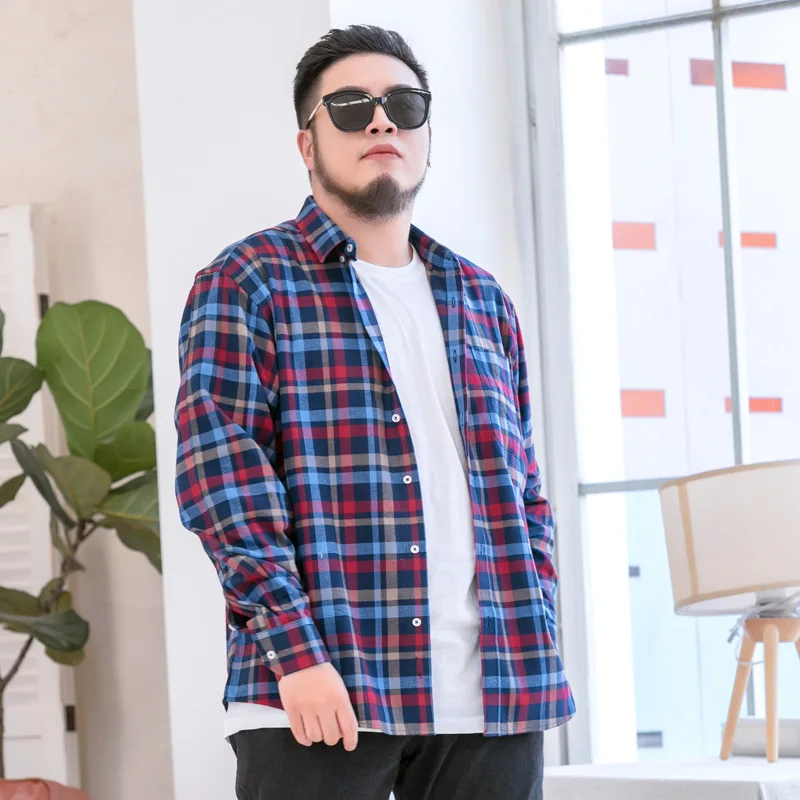 High Quality Men's Shirt Large Size Heavy Long-staple Cotton Plaid Flannel Long Sleeve Shirt for Men
