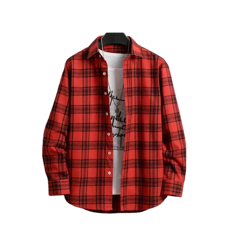 Factory Cheap Price Custom logo Men Brushed Shirt Cotton Plaid Red Flannel Shirt