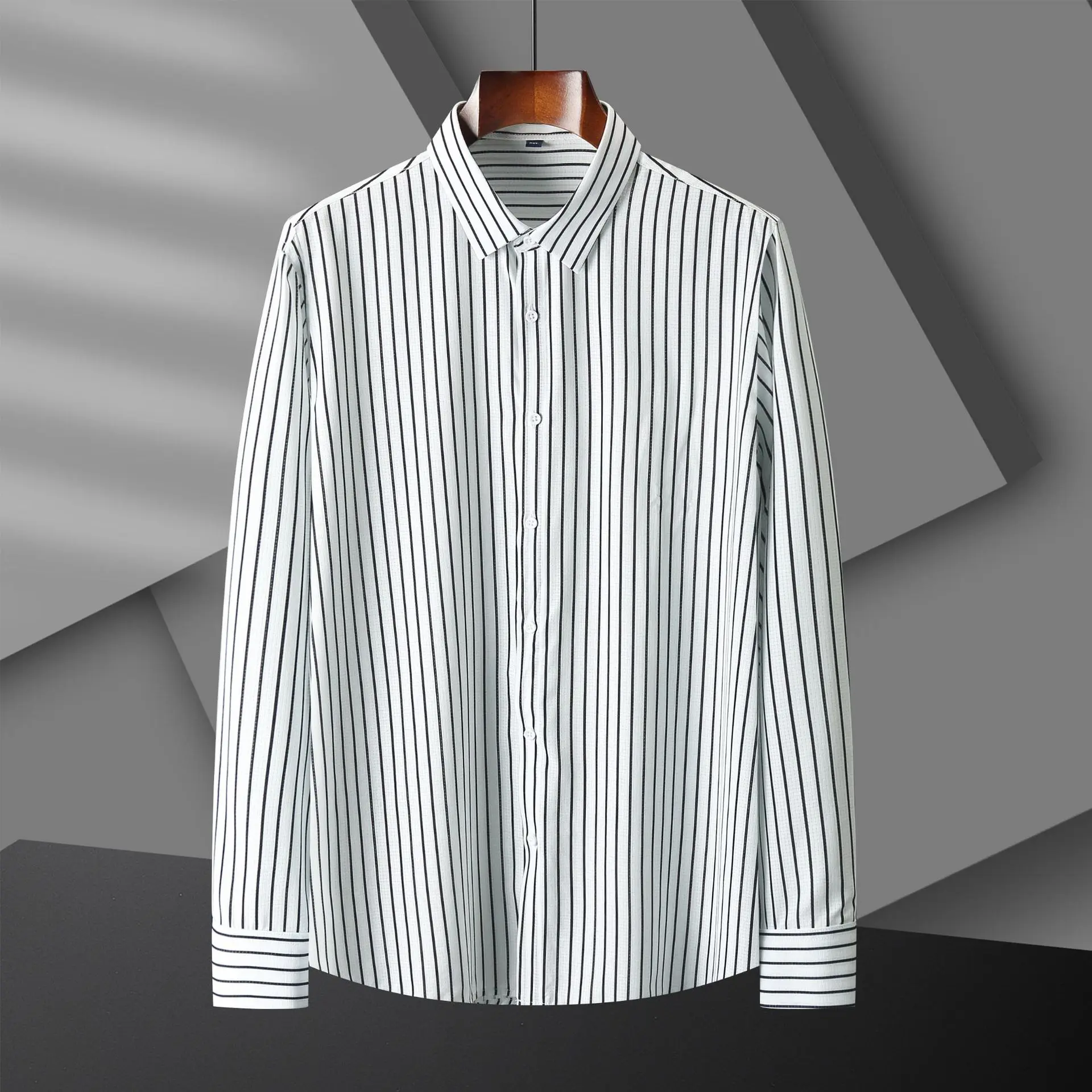 Fashion Large Size Stripe Breathable Mesh Clothes Men's Long Sleeve Men's Shirts Oversized Tshirt