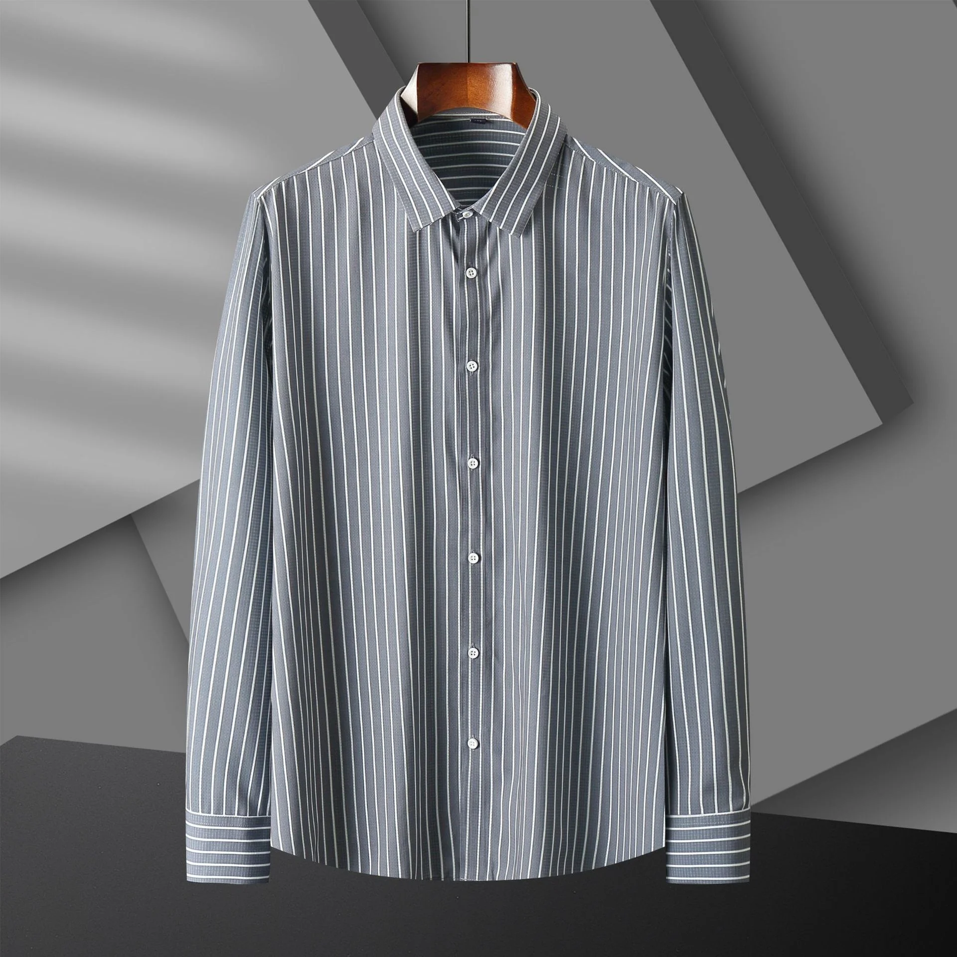 New High Quality Fashion Large Size Stripe Mesh Clothes Men's Long Sleeve Fat Men t Shirts