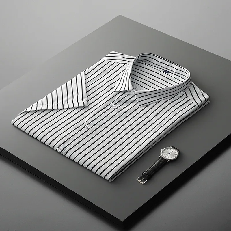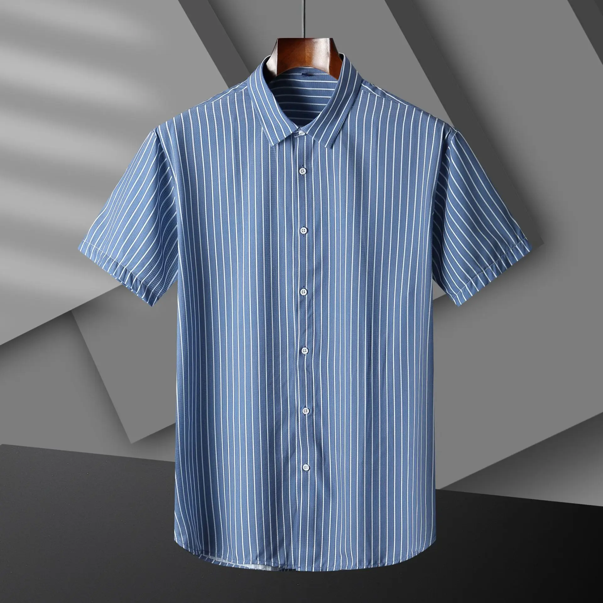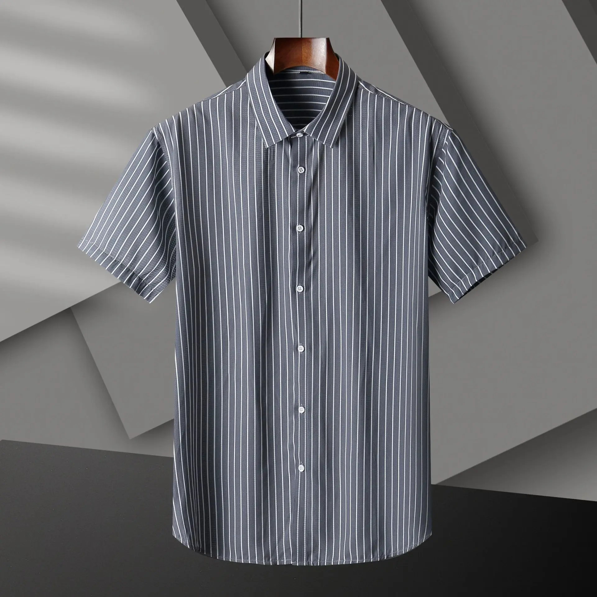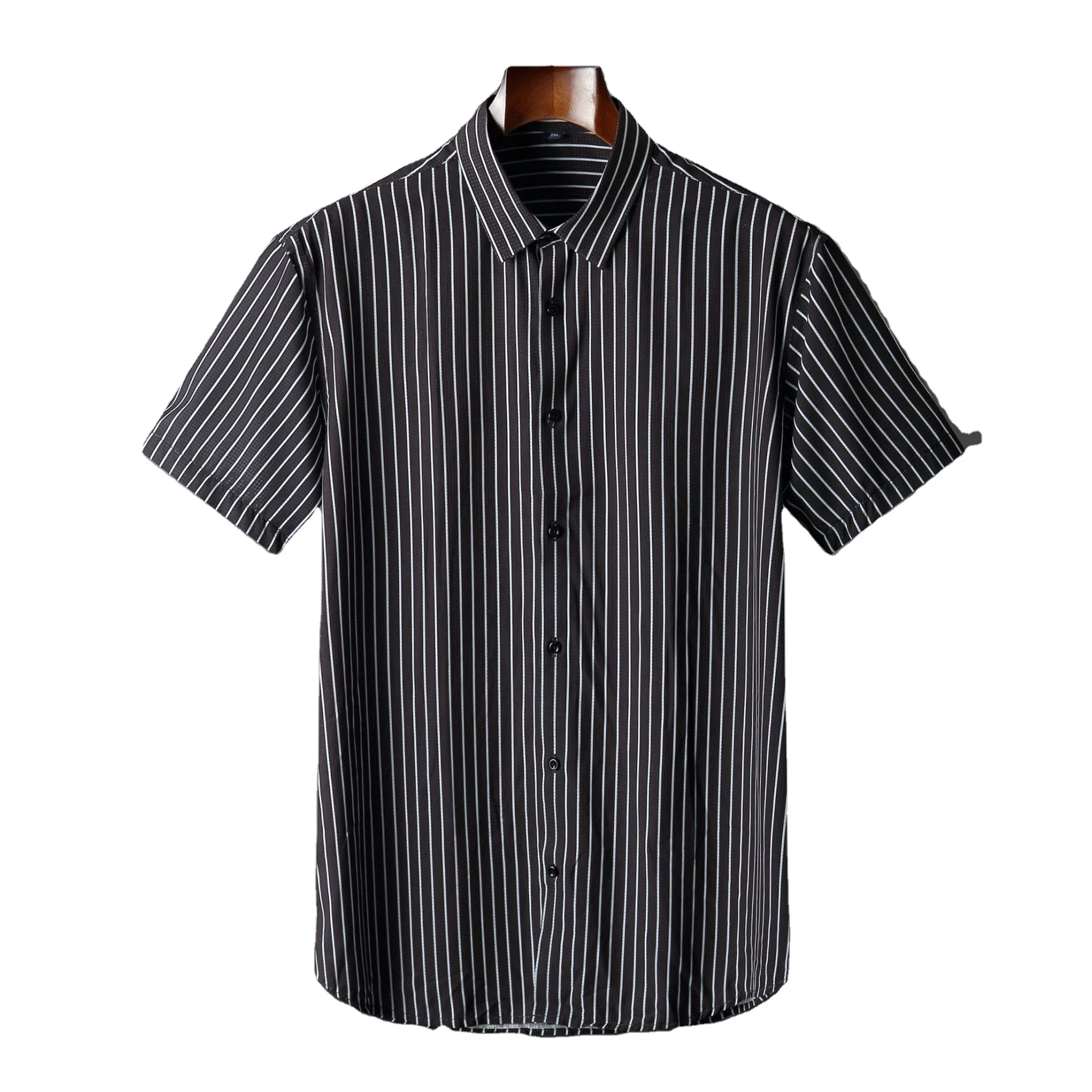 Recommend Men's Black Striped Plus Size Shirts Breathable Casual Short Sleeve Summer Shirts Men