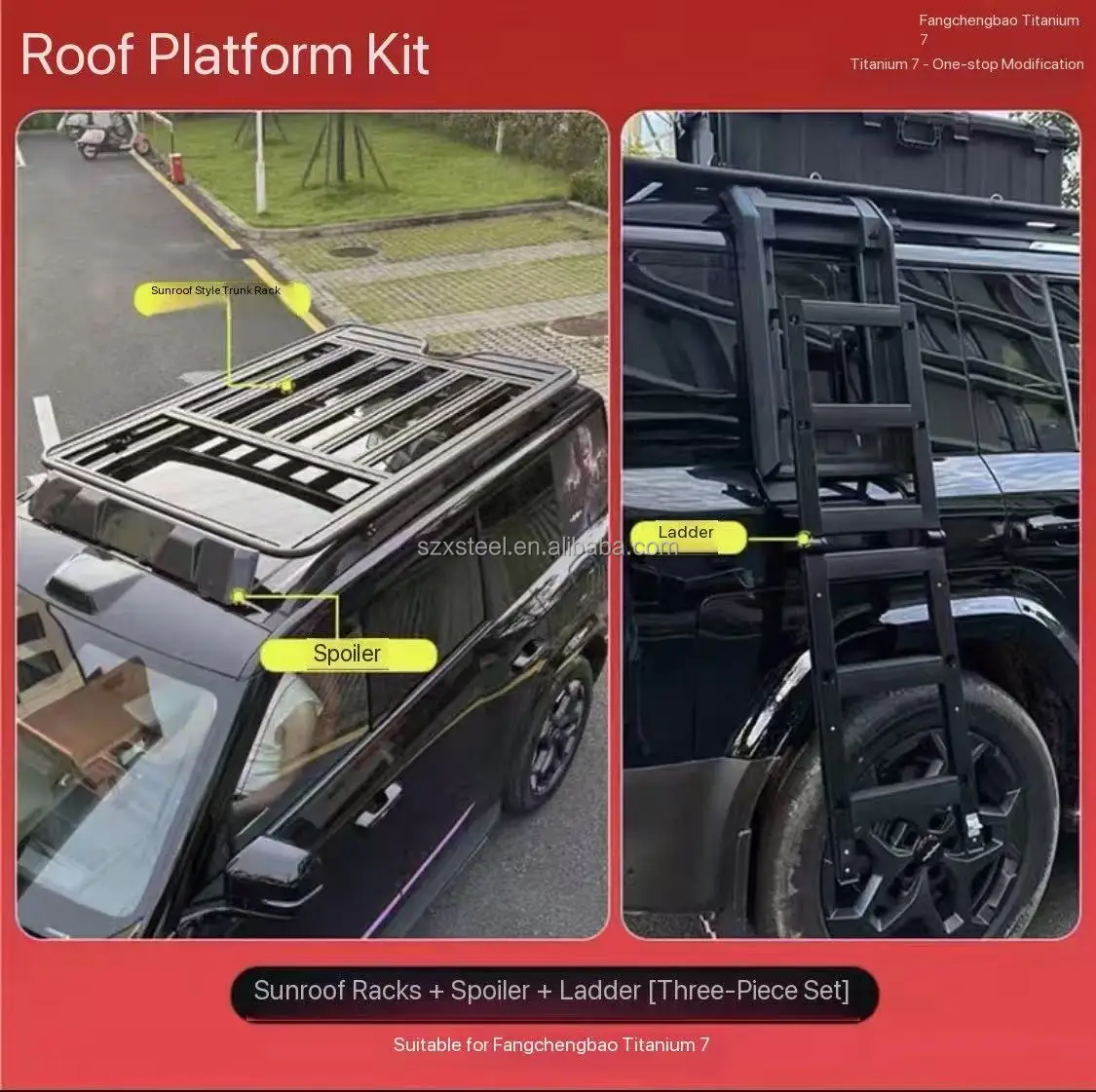 For Equation Leopard Titanium 7 Roof Luggage Rack Frame Extension Platform Folding Ladder Small Backpack Modification Parts