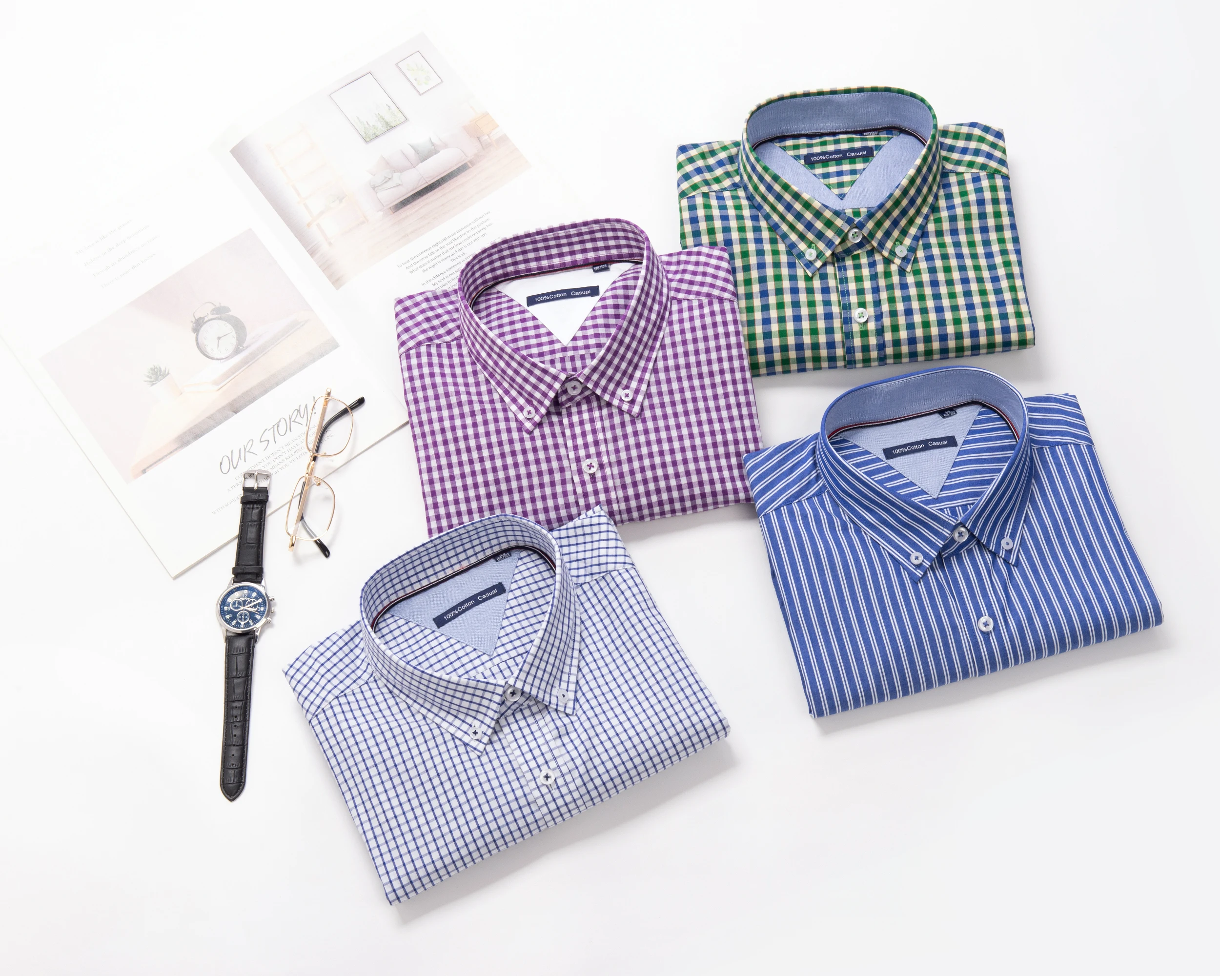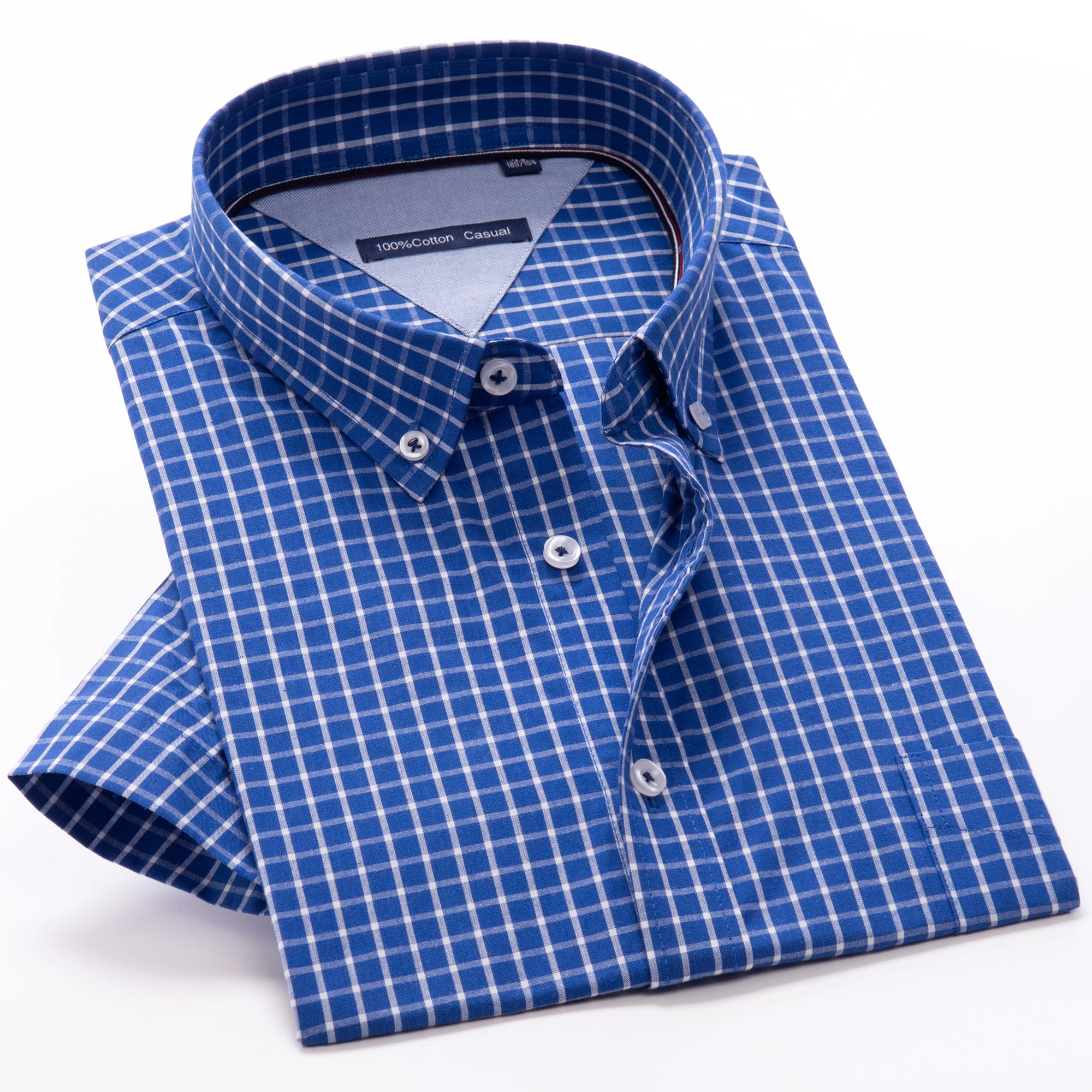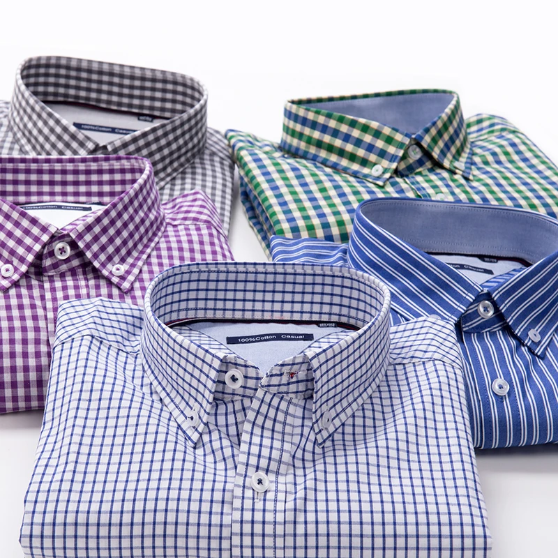 Summer Cotton Plaid Striped Shirt Slim Plus Size Short Sleeve Men's Loose Casual Button Half Sleeve Custom Shirt