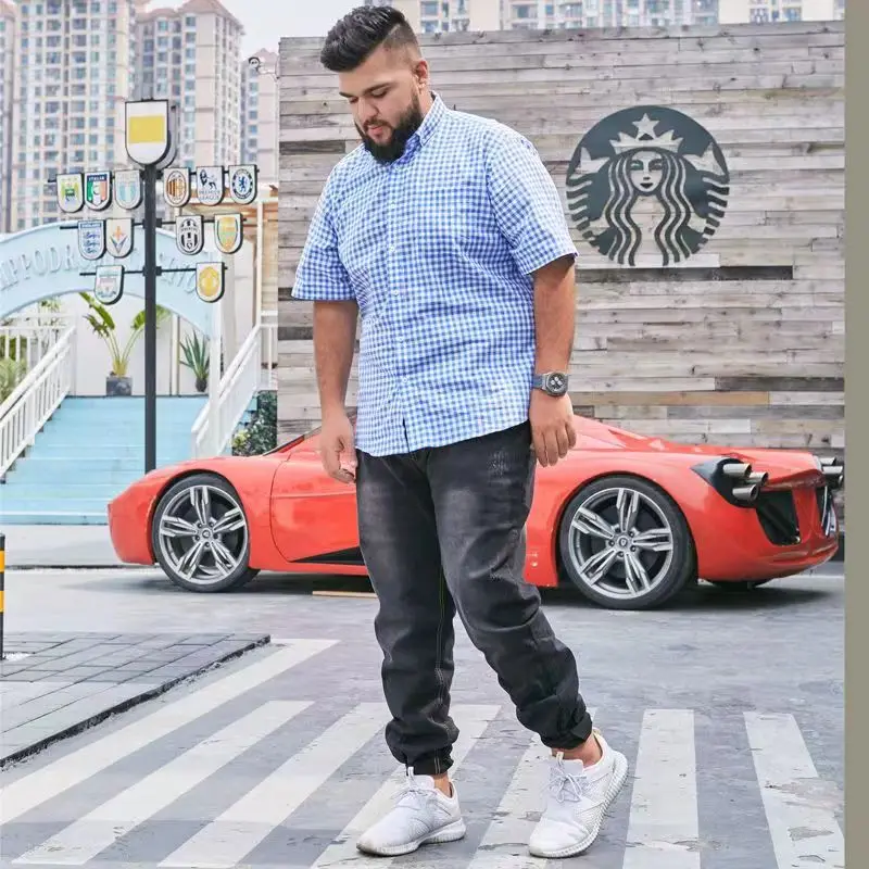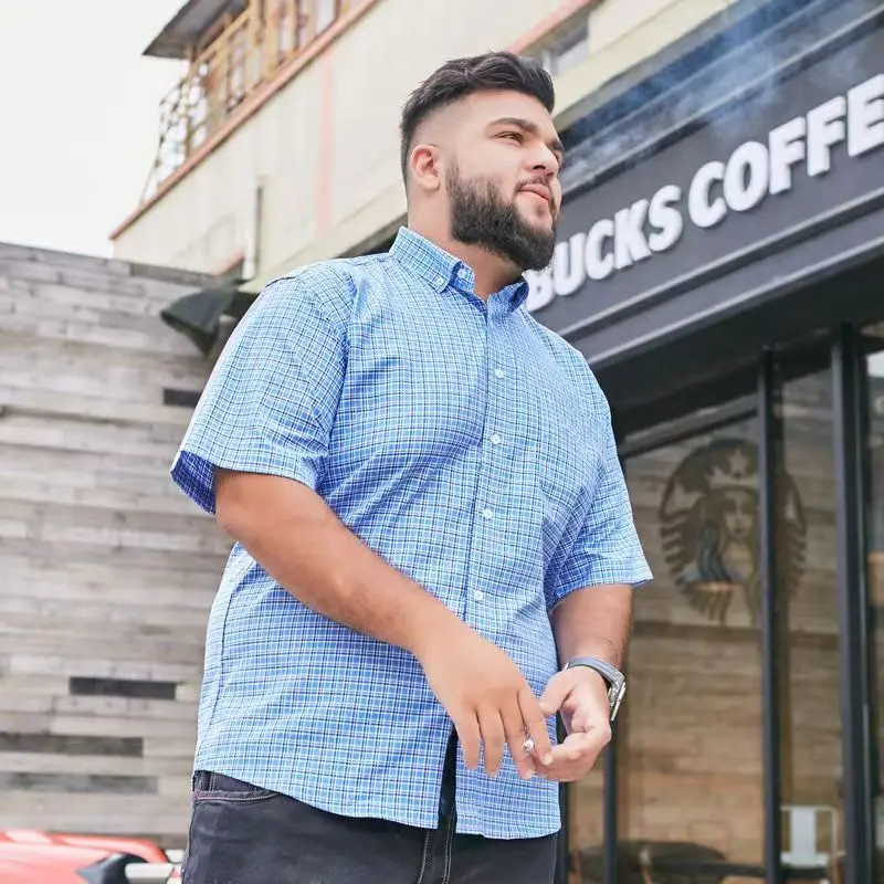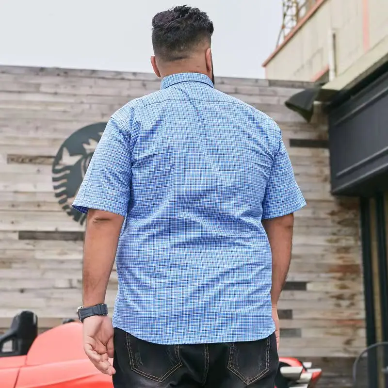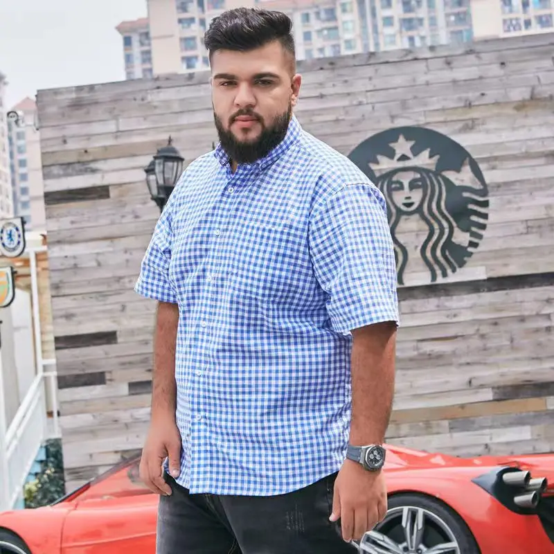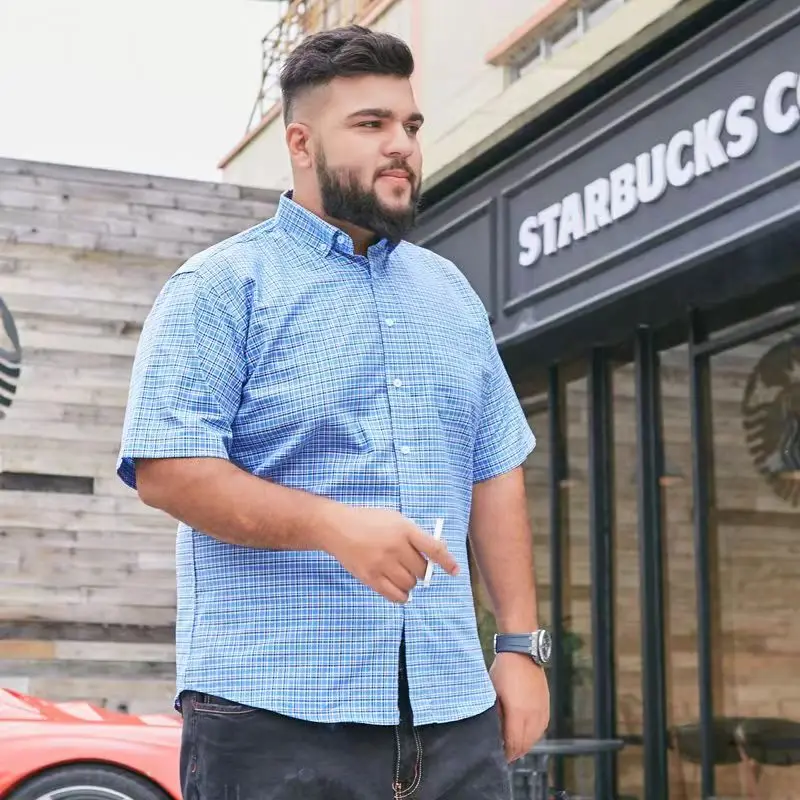 Summer 100% Cotton Plaid Stripe Shirt Plus Size Short Sleeve Men's Loose Half Sleeve Dresses for Men