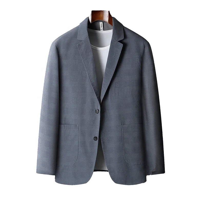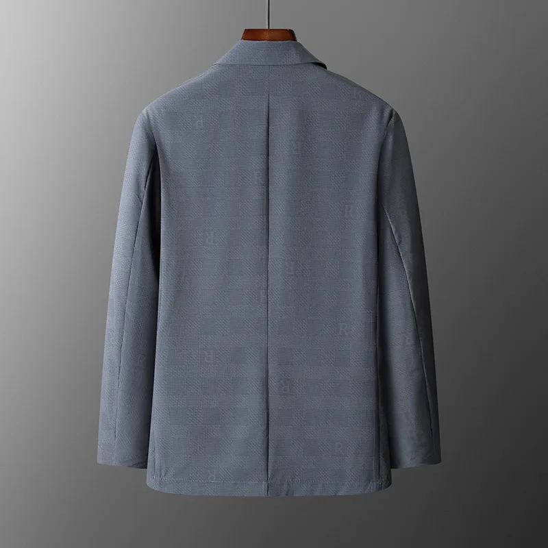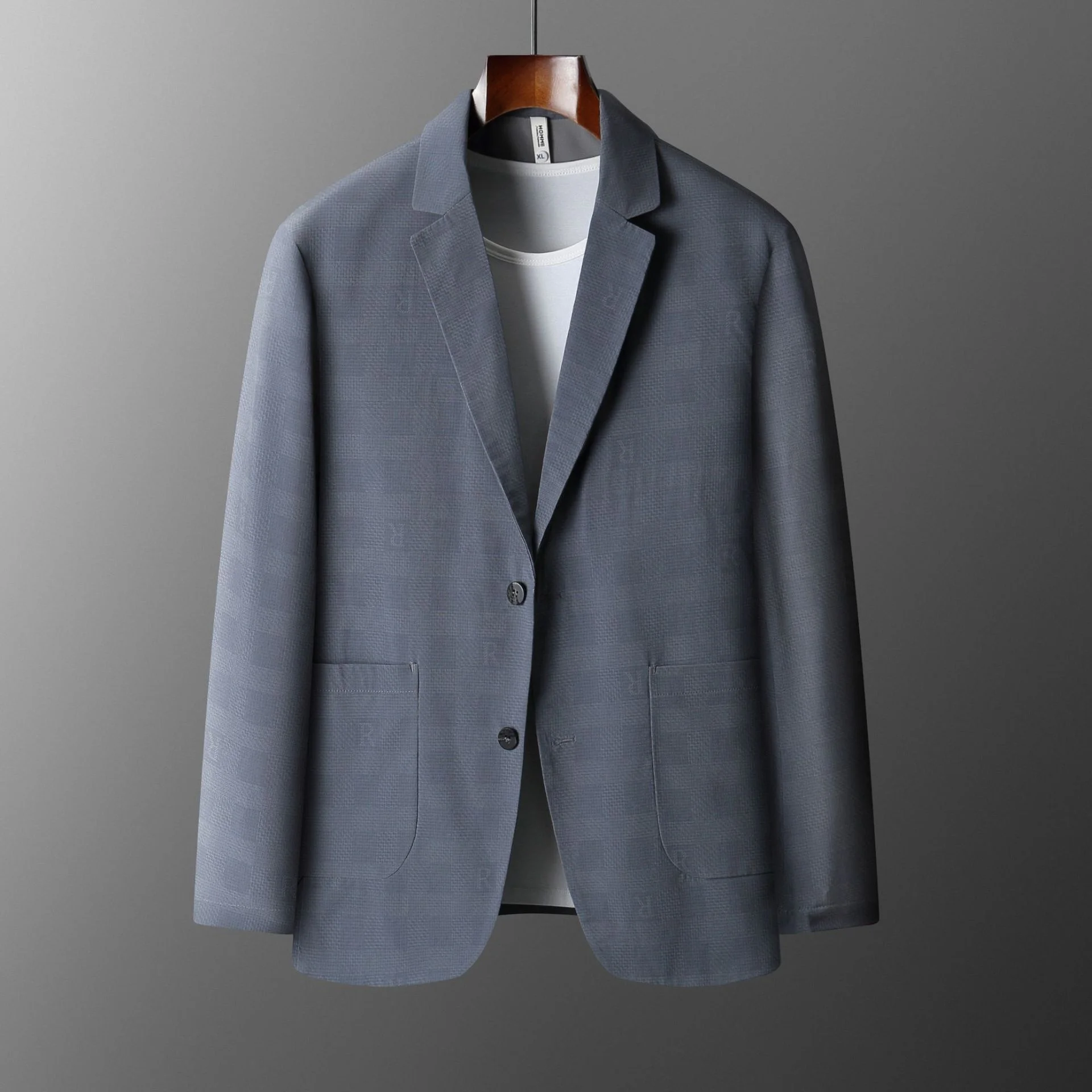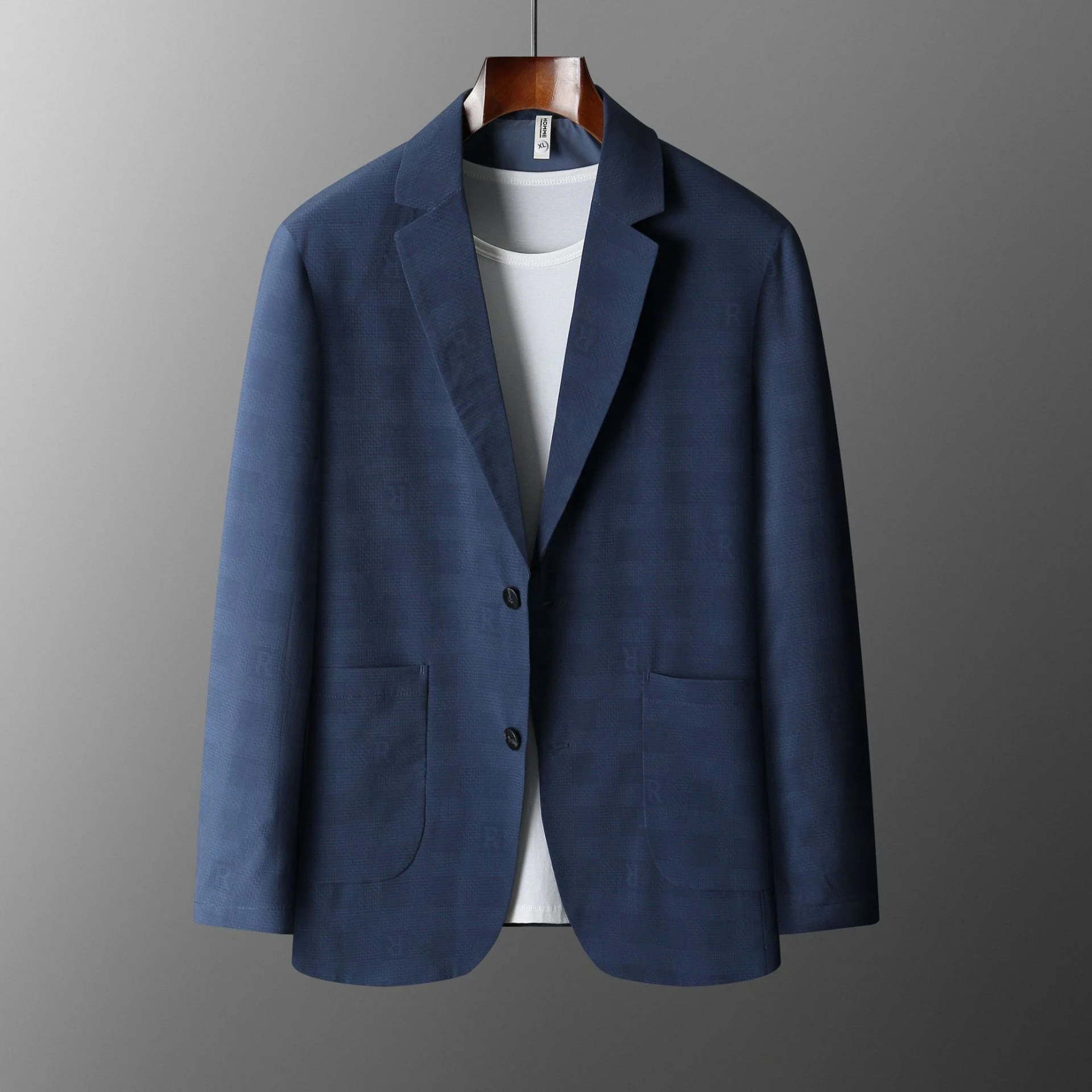 Spring Summer Men's Suit and Formal Dress Blazers Jackets Men Business Striped No-ironing Embossed Printed Elastic Casual Suit