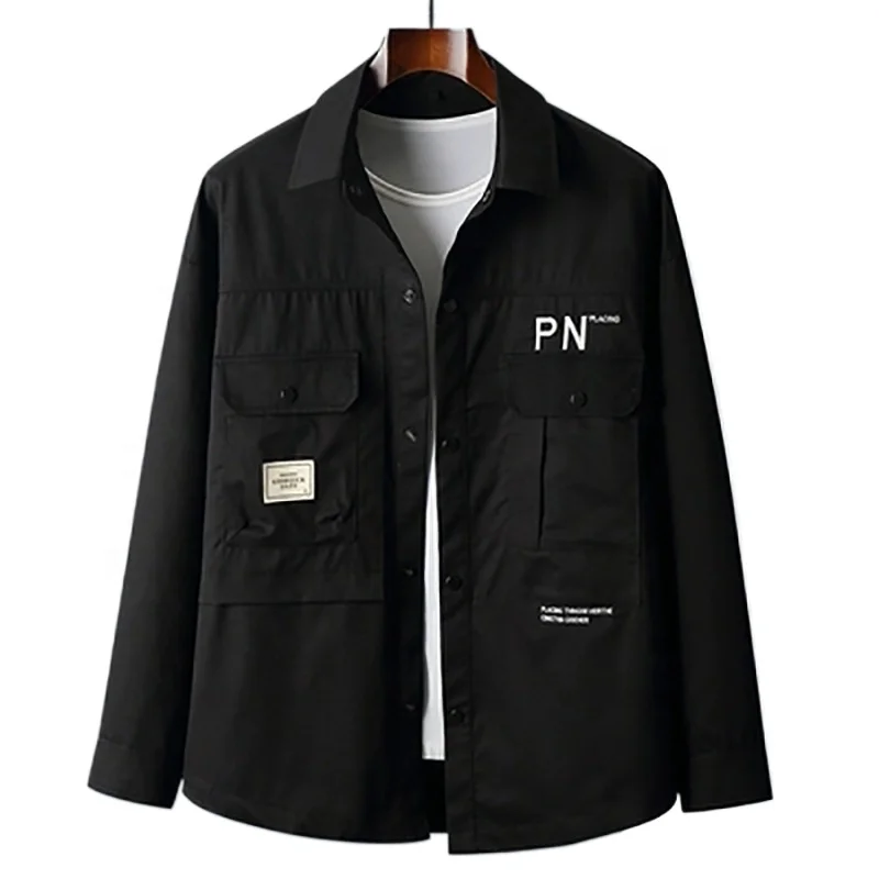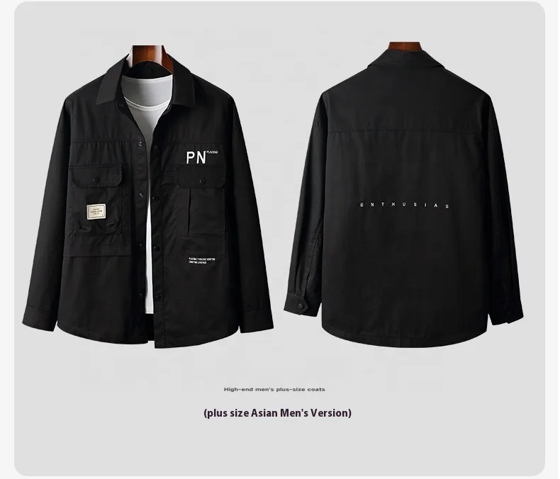 Black Classic Plus-size Men's Jacket Shirt Long Sleeve Pocket Fresh Everyday Casual Jacket Simple Comfortable Soft Casual